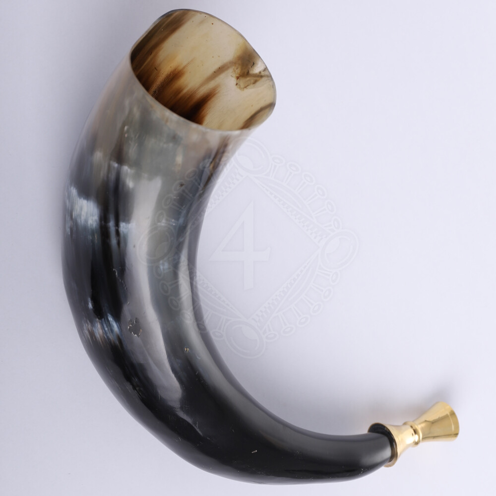 This blowing horn is made from natural horn with a brass mouthpiece. Signal horns were used during the dark ages and medieval period during hunting, war, travel and seafaring as a means of communication. The blowing horn has a brass mouthpiece to make the blowing easier and also reduce moisture and the taste of the horn. Further product information ...