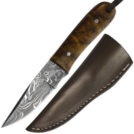 The history of Damascus steel dates back thousands of years. The original "true" Damascus (Wootz) came from India and the Middle East and was legendary for its ability to cut through a rifle barrel or a silk scarf floating in the air. Today, we use the term "Damascus" for pattern-welded steel, a technique perfected in Europe by the Celts and later by the masters of Solingen. The purpose was originally to combine hard (brittle) steel for the edge with soft (tough) steel to prevent breakage. In this knife, the layering serves primarily an aesthetic function, while the modern stainless core ensures top cutting performance without the high maintenance required by historical carbon steels.