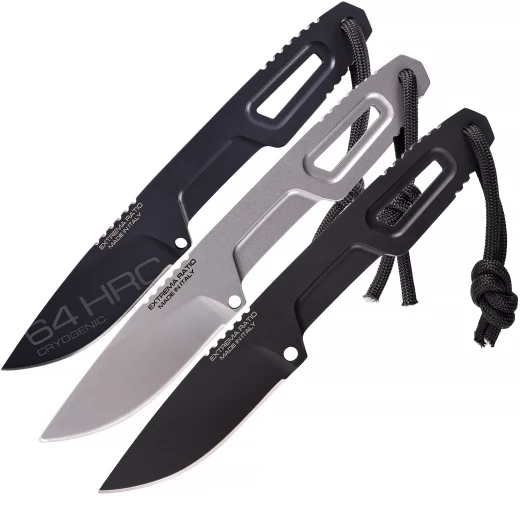 For this reason, Extrema Ratio has chosen the new EXP DARK finishing. For its extreme hardness and resistance to wear and abrasion this steel is not easy to sharp.