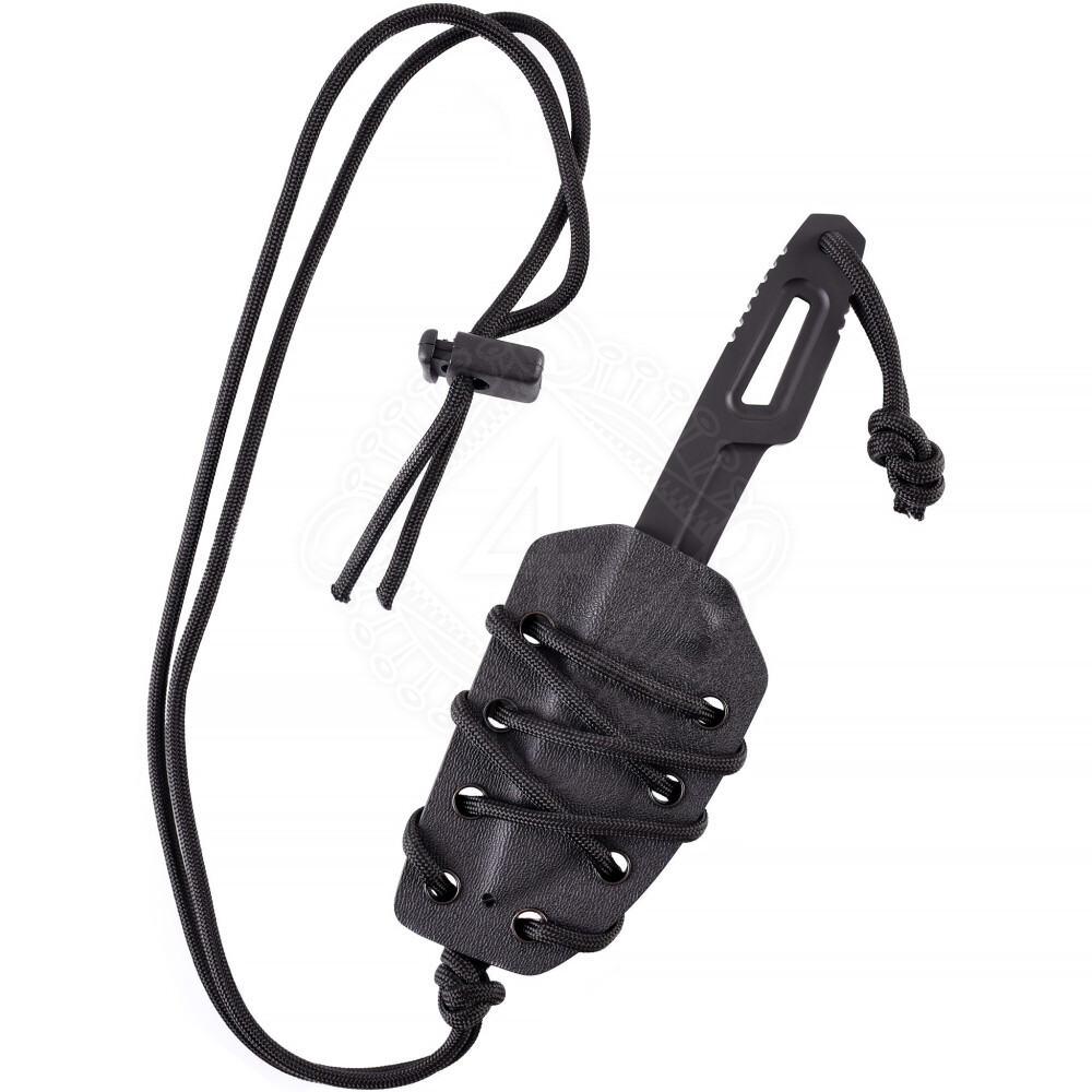 It can be worn as a neck knife thanks to its Paracord 550 lanyard. This way, it is possible to keep it vertical with the handle facing down. The pre-shaped Kydex sheath has eyelets, allowing to apply both lanyard and accessory holder.