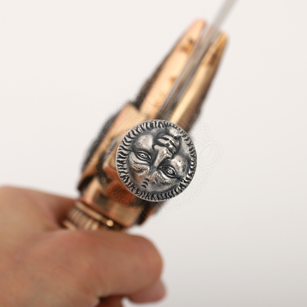 Handle made of Zamak richly decorated with the main Masons symbols. In the center of the cross the symbol of the compass and square, with the two legs of the bar behind the angle corresponding to the degree of Apprentice. Further product information ...
