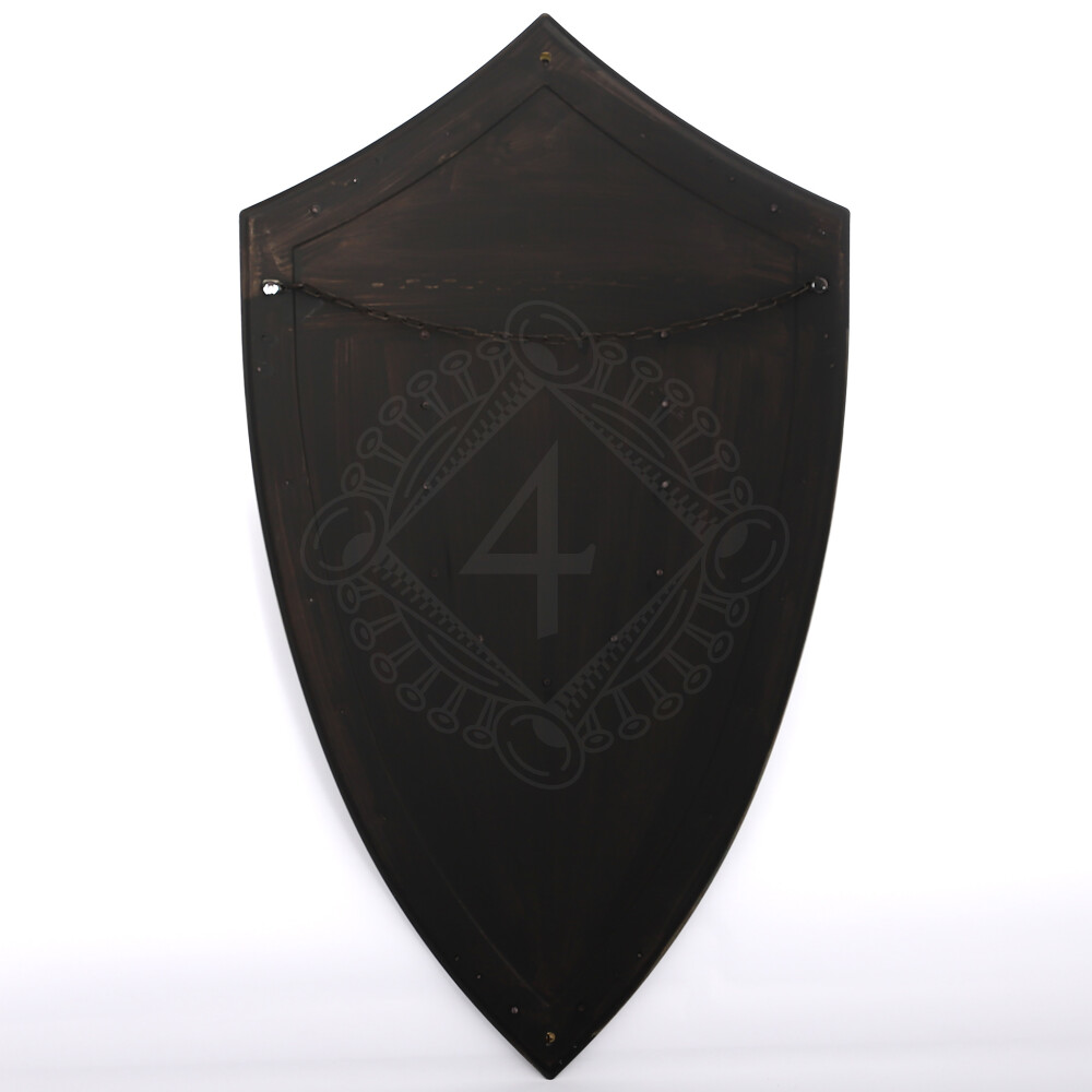 - The shield is equipped with a metal chain on the back for hanging on the wall