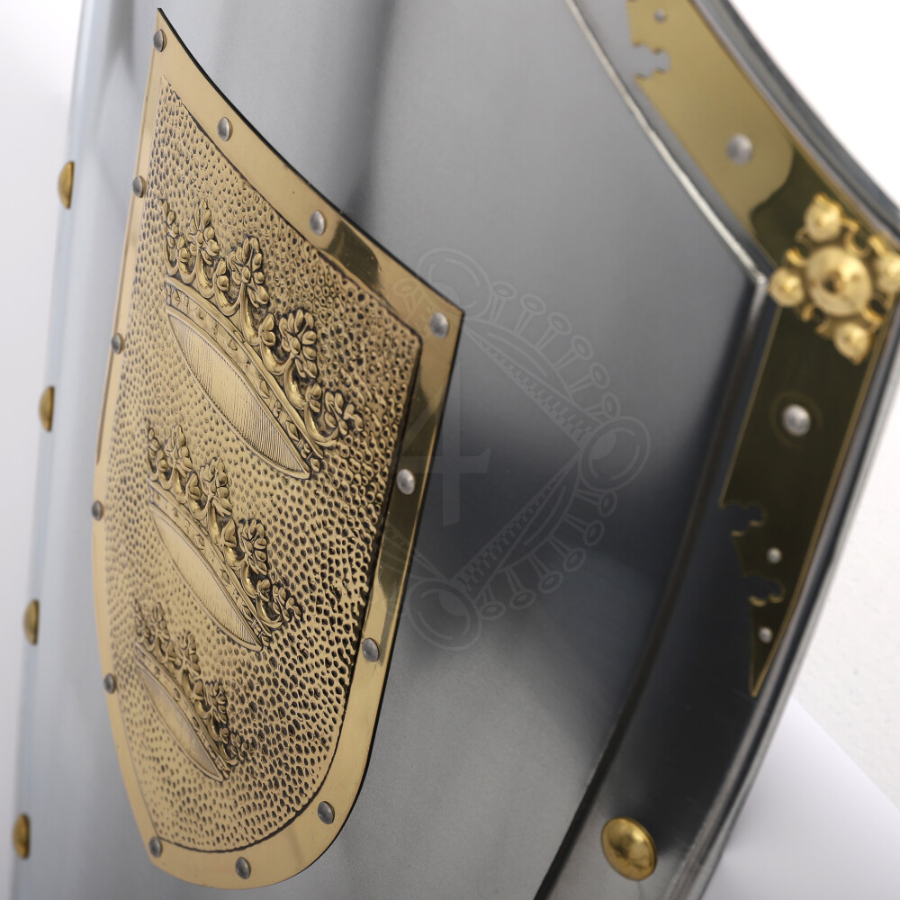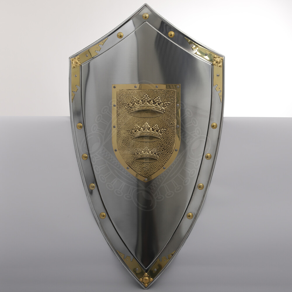 King Arthur Shield Three Crowns from the "Historic Shields" Collection. Central steel application with design of Three Crowns of King Arthur Shield. Decorated with decorative rivets. Further product information ...