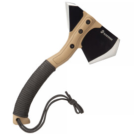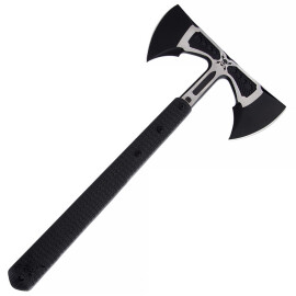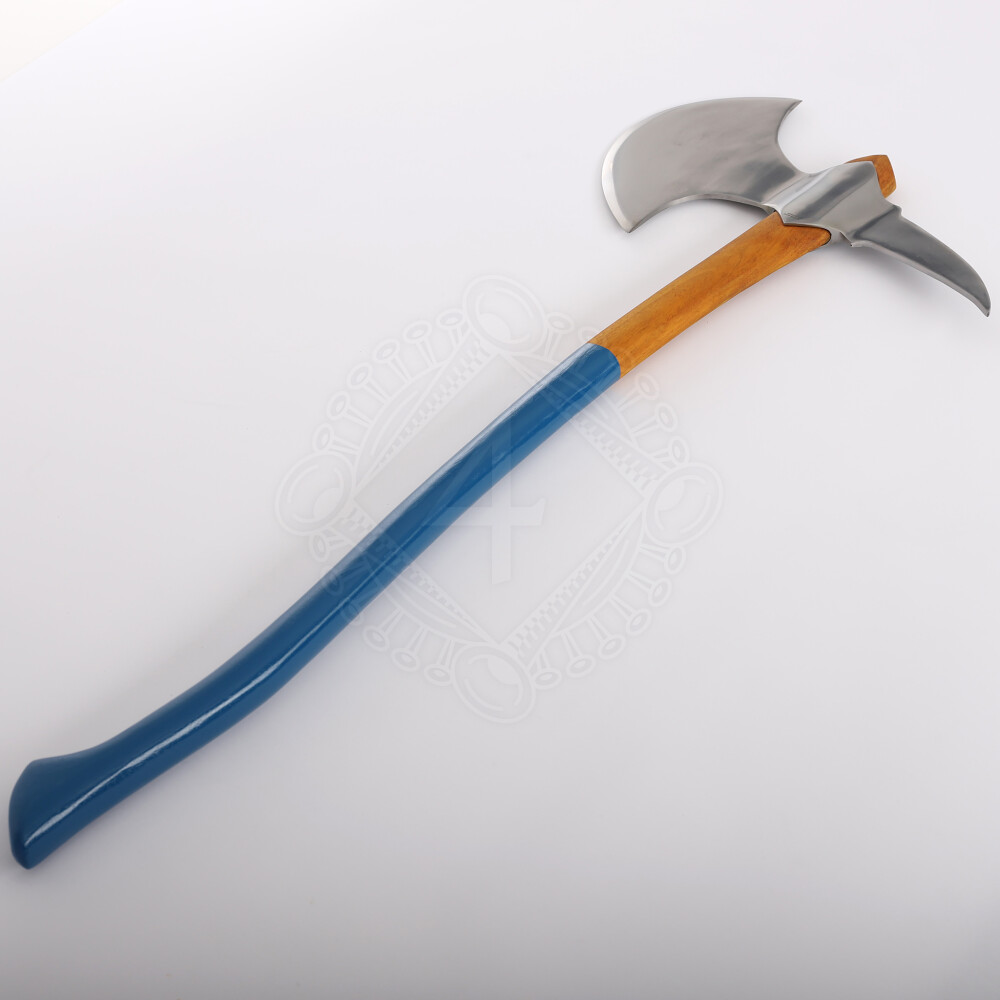 Found at auction, we are happy to recreate this traditional fire axe in its entirety – down to the blue paint of the sinuously curved hard wood shaft seen on the original. The high carbon steel head has a massive axe face and spike for breaching and prying. Further product information ...