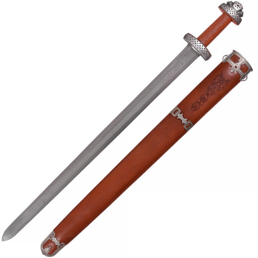 Hanwei continues to push the envelope with its forging capability in the Trondheim sword, produced as a one-piece forging in pattern-welded high-carbon steel. Patterned after swords that have been discovered in the area around Trondheim, Norway, the sword exhibits early ninth-century styling, a time when the Norwegian Vikings were pillaging Britain and Ireland. The beauty of the blade is matched by the grip and scabbard, both of which are wrapped in top-grain leather, engraved in a classic Viking motif. Further product information ...