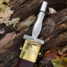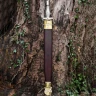 - Including matching scabbard made of wood and leather, with brass fittings.