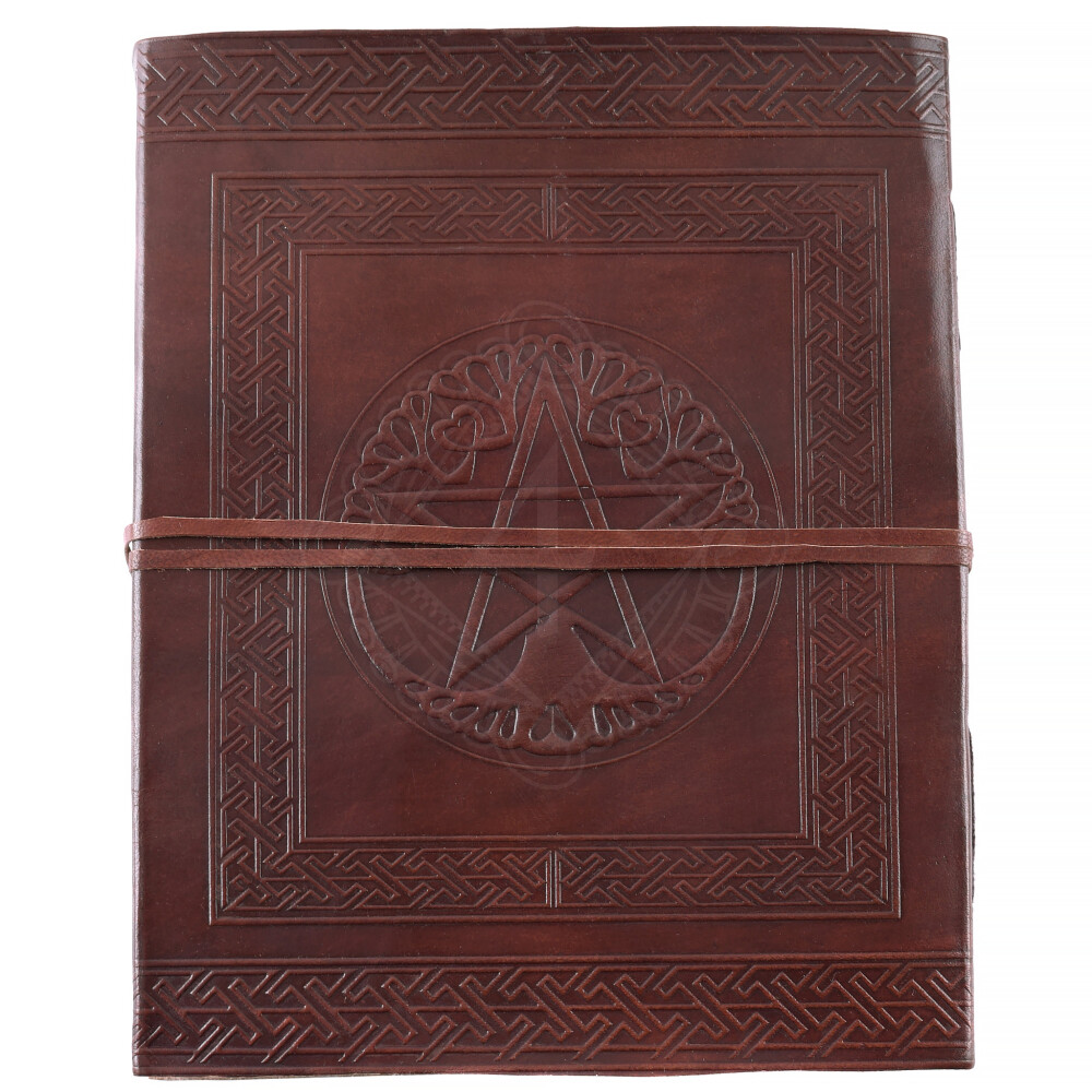 Large Brown Leather Notepad with Pentagram, 20x25cm