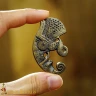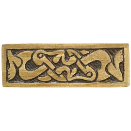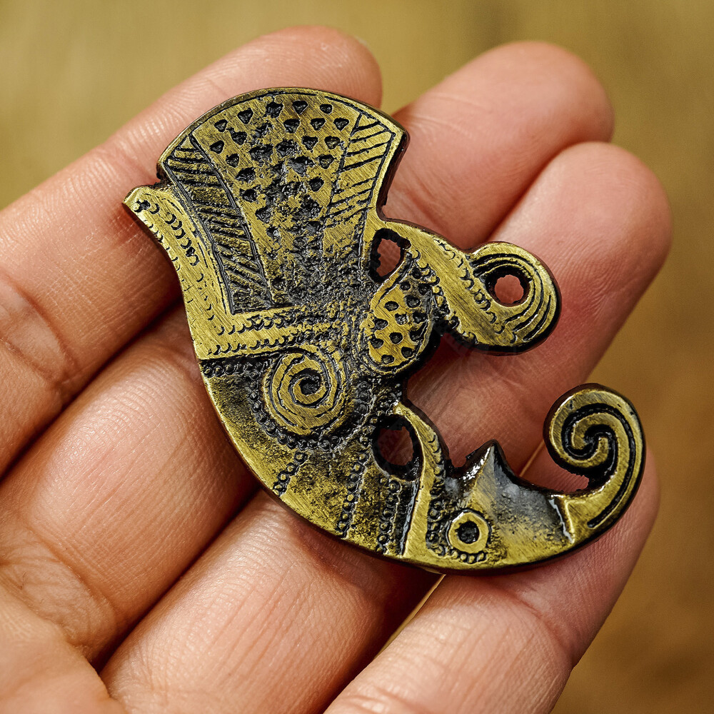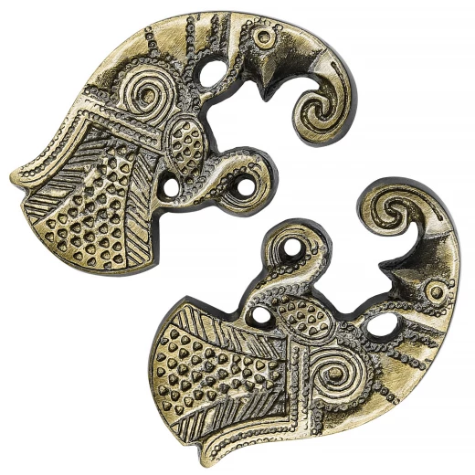 Leather fittings 48mm two Odin's ravens, patinated brass