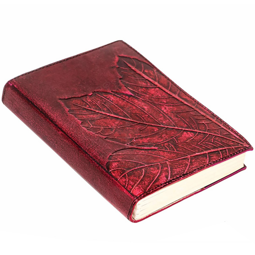 Red Leather Journal with Embossed Chestnut Leaf Design - Outlet