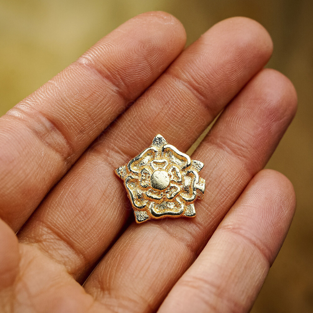 This gorgeous Tudor rose Brass belt mount is historically inspired by the badges worn under the Tudor dynasty. At the end of the War of Roses, which was fought between the house of Lancaster symbolized by a red rose and the house of York symbolized by a white rose, the Tudor dynasty came to power. They decided to reunite the two roses that have been fighting each other bloodily for centuries, in one significant rose badge, giving birth to this emblematic mount used in various leather equipment back then under the Tudor dynasty. It is still a part of Great Britain identity, present to on the 20 cents coins of modern-day Great Britain!