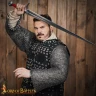 Are you looking for reliable and historically authentic arm protection for your reenactment battles or period costume? These connected chainmail sleeves, crafted from robust 9mm inner diameter flat mild steel rings (1.14mm material thickness) with alternating riveted and solid rings, offer you excellent coverage and flexibility. They are ideal for portraying characters from the 14th and 15th centuries and perfectly complement your gambeson or arming doublet. Further product information ...