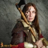 Want to add that perfect touch of authenticity and power to your Viking or barbarian costume? This leather pauldron (sold as 1 piece) is exactly what you're looking for. It is crafted from robust yet supple genuine buffalo leather and consists of two connected parts – an upper plate covering the shoulder and a lower plate protecting the upper arm. Both parts are adorned with detailed, deep embossing featuring the Tree of Life, Yggdrasil, and Thor's Hammer, Mjöllnir. Thanks to a clever strapping system – a top loop for a gorget strap and a long strap with a buckle to secure it across the chest – the pauldron sits firmly and comfortably. Its symmetrical design allows it to be worn on either the left or right shoulder. Ideal for LARP, cosplay, or fantasy re-enactment. Further product information ...