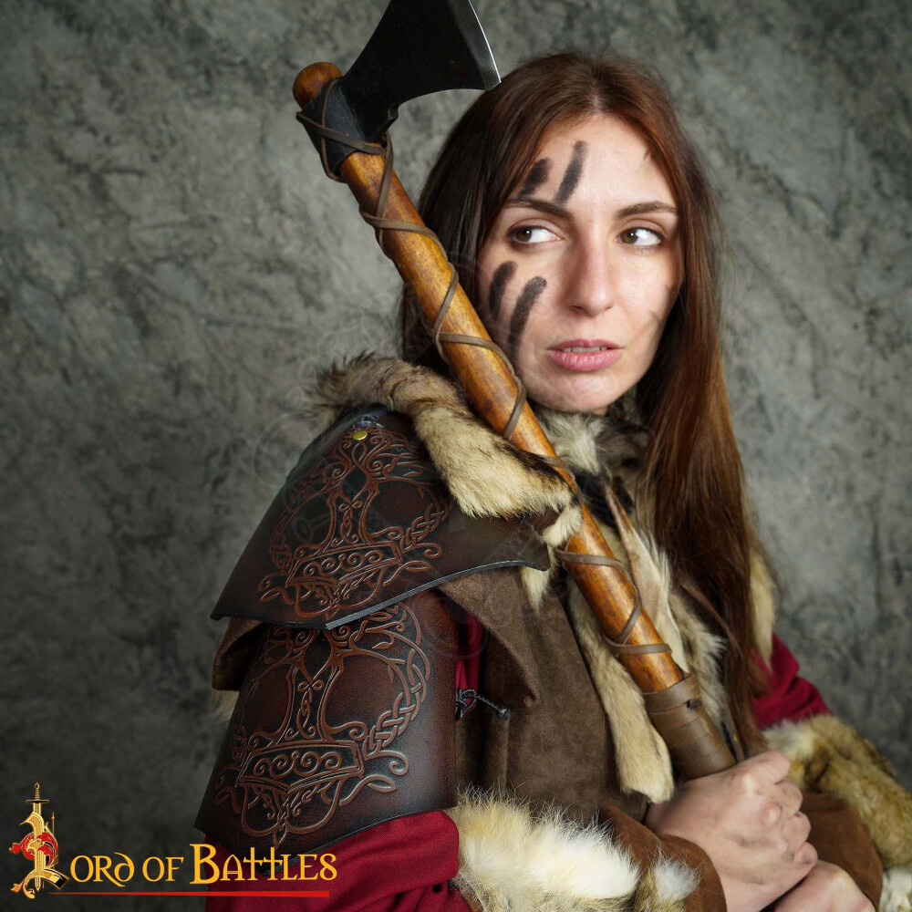 For a complete Viking look, we recommend combining this pauldron with a leather gorget, bracers, or a leather cuirass featuring similar motifs.
