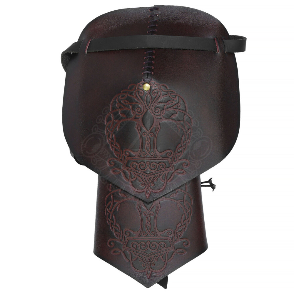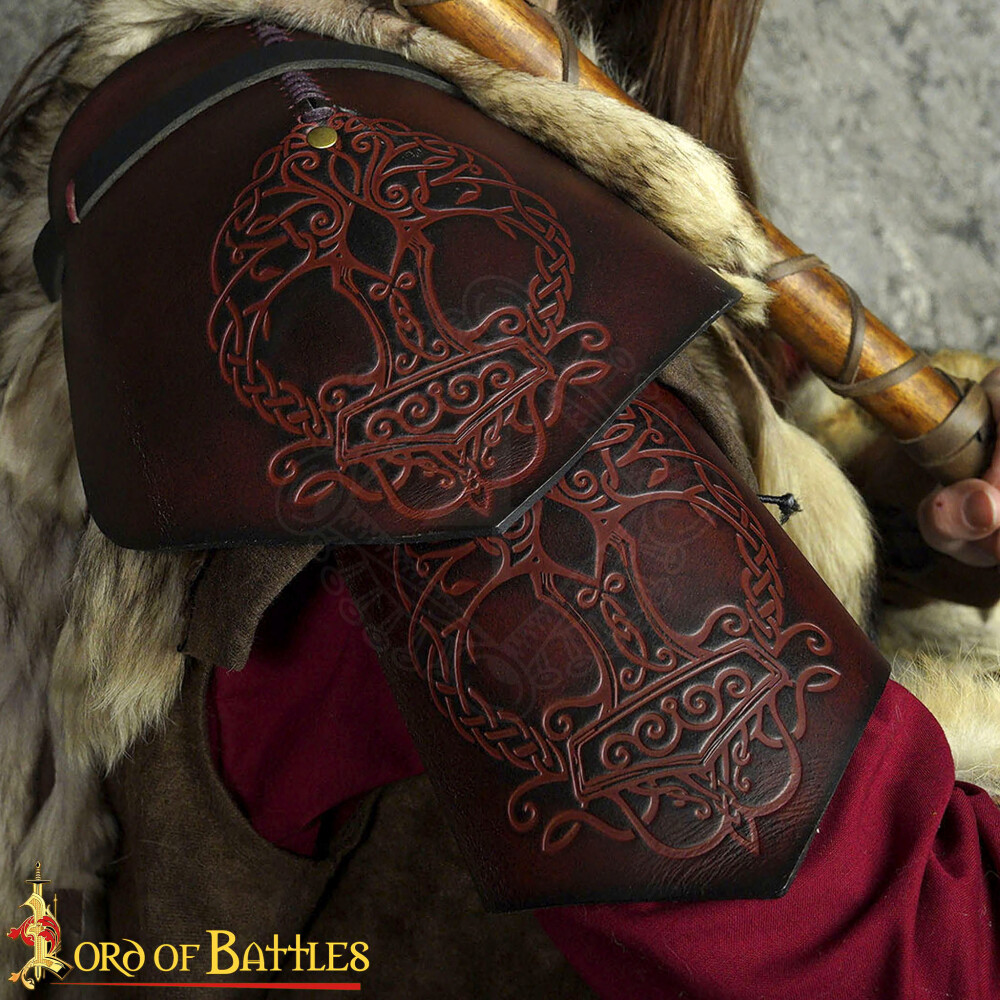 Leather Pauldron "Yggdrasil and Mjöllnir", 1 pc, Viking Style