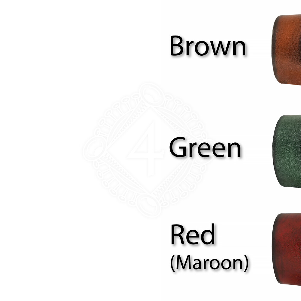 | Material | Genuine buffalo leather, brass hardware (buckle and rivets) |