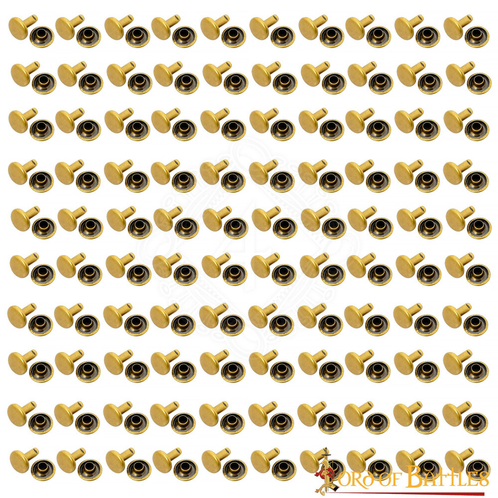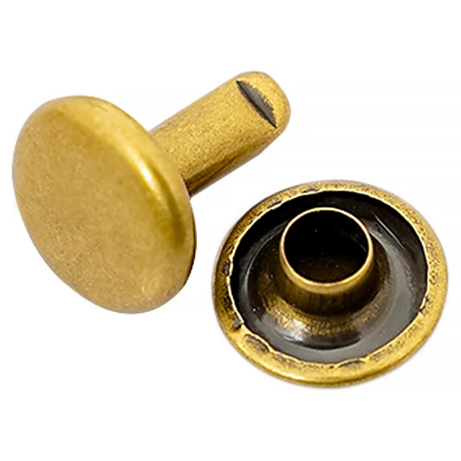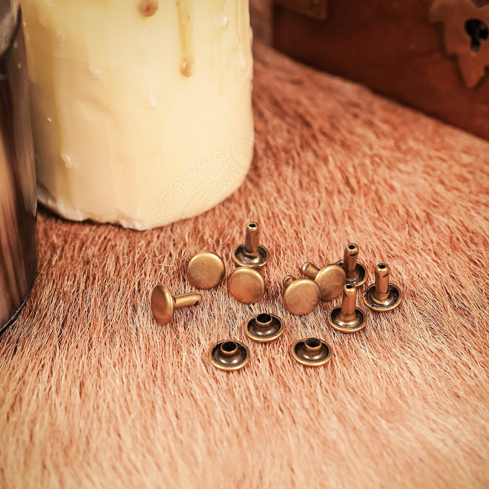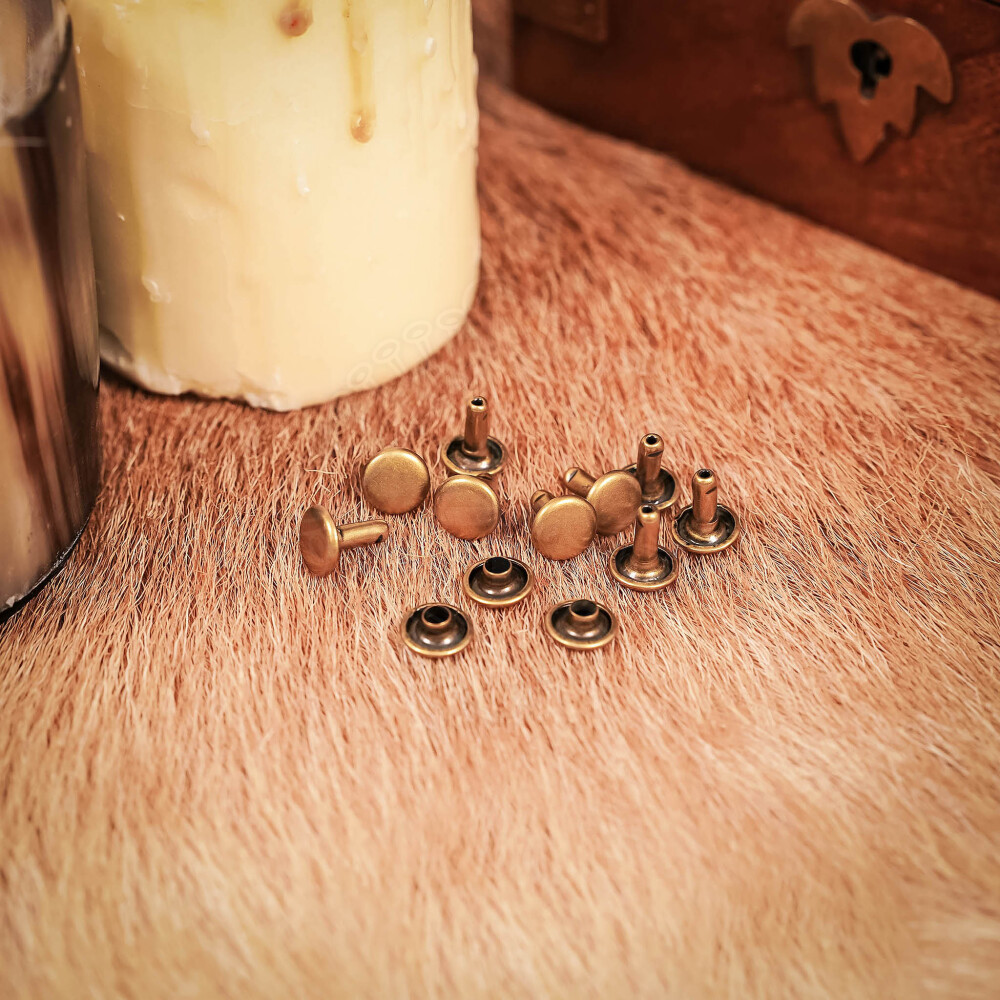 Double Cap Leather Rivets, 9 mm, Antique Brass, 100 Pack - Outlet