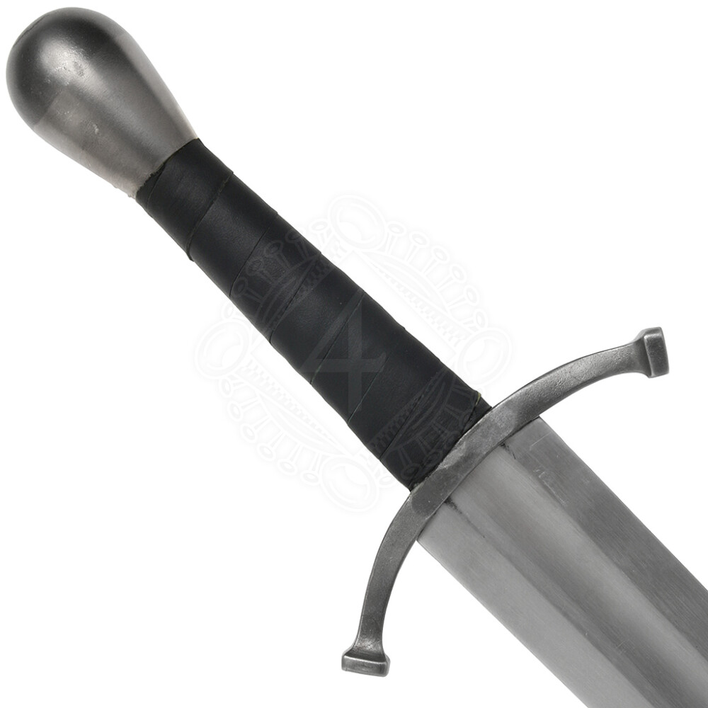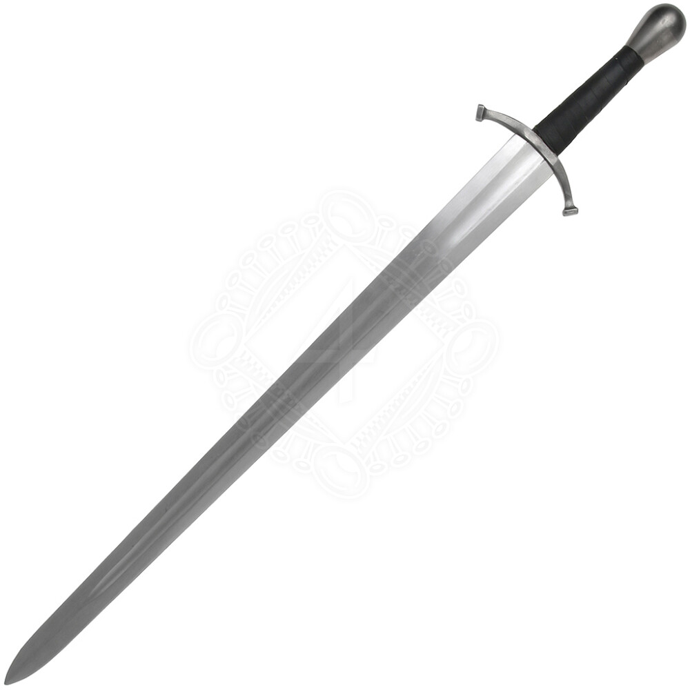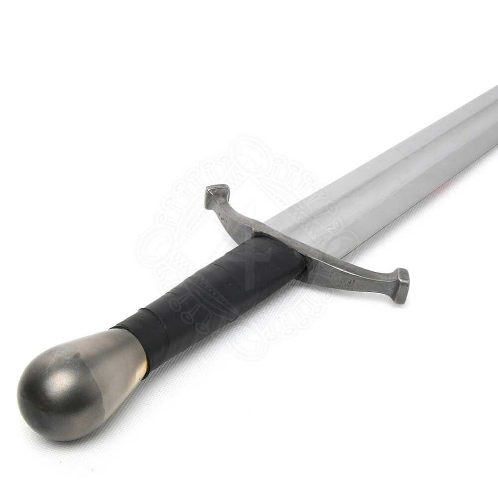 The practical | battle-ready version of this sword has a blunt edge (2-3mm) and rounded point. Such sword was designed to be drawn in a battle or in a stage combat show.