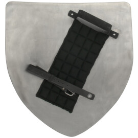 This excellent museum replica has a removeable central spike which, if mounted, makes the shield become an evil weapon.