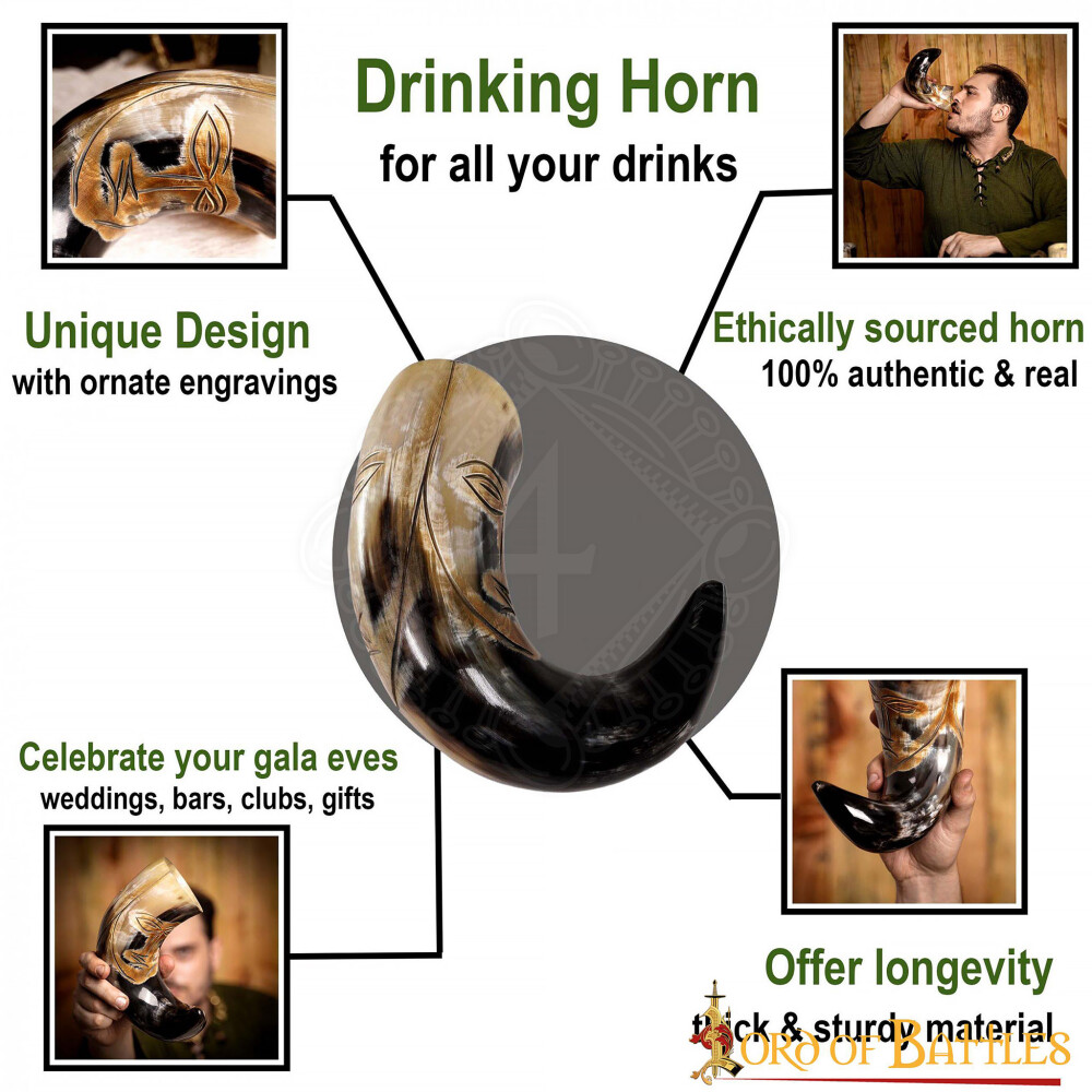 Crafted from ethically sourced genuine ox horn, it can hold around 500-600ml. Please use for serving drinks with max. 20% alcohol content. Please avoid dishwashers and hot or warm beverages. Wash under running lukewarm water before first use. For a longer life, treat with bees’ wax after each use. Please note this is a natural product that decays with time and, hence cracks may come.