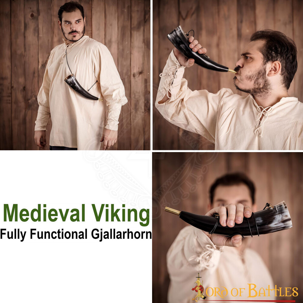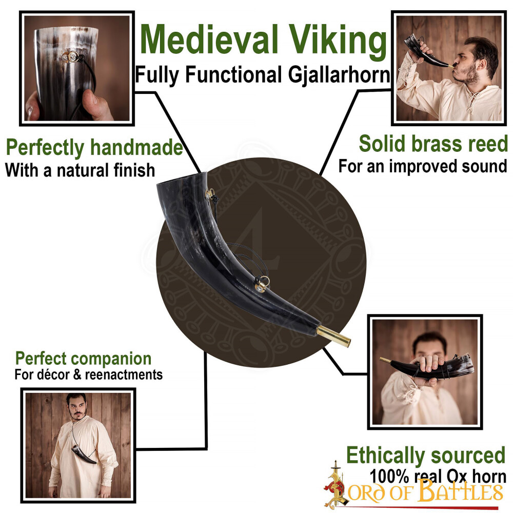 War and signal horns have been used for millennia across various cultures. Their purpose was not only to call armies to the battlefield but also to communicate during hunts or to announce important events. In Norse mythology, the Gjallarhorn ("loudly sounding horn") holds special significance. According to legend, it is owned by the god Heimdall, guardian of the gods, who will sound it to summon the other gods to battle at the onset of Ragnarök. Its call can be heard throughout the Nine Worlds. With this horn, you can, at least for a moment, feel what it's like to be a proud Viking warrior or even Heimdall himself!