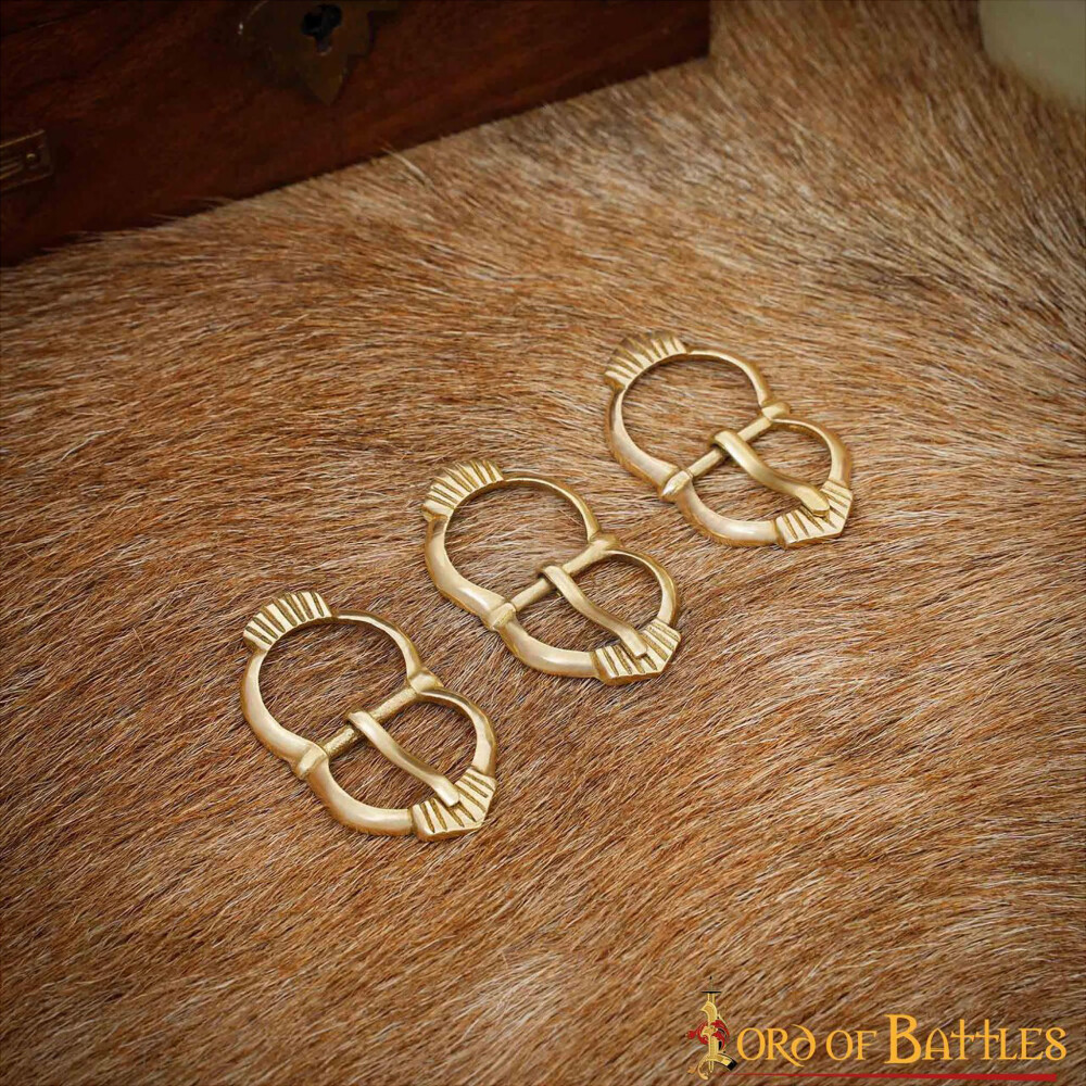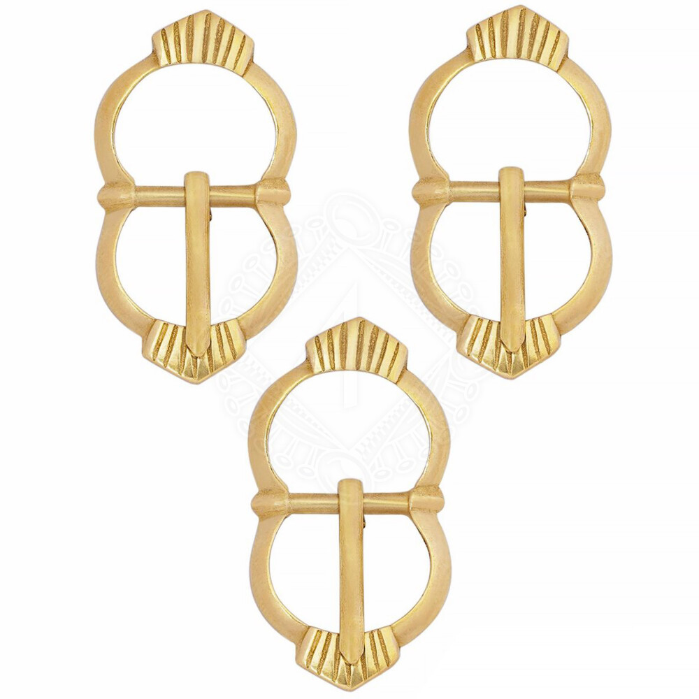 3pcs Late Medieval Double Loop Brass Buckle 27x50mm