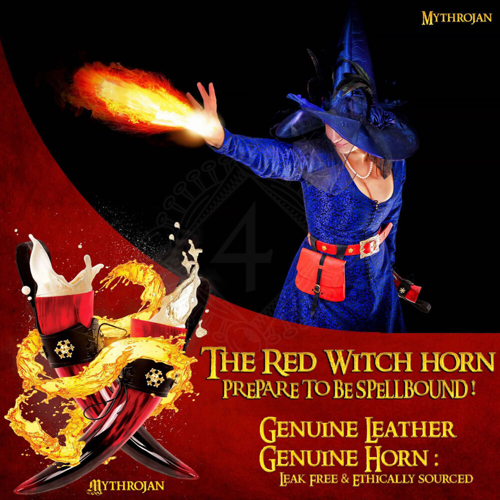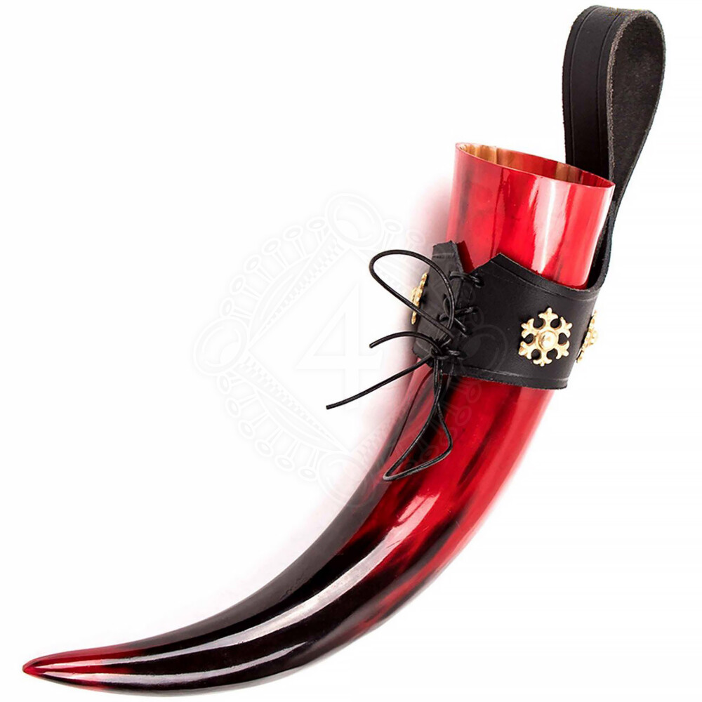 Red Viking Drinking Horn "Red Witch", 200ml or 400ml, with Leather Holder