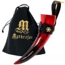 - Package Includes: Drinking horn, leather belt holder, protective Mythrojan cloth bag