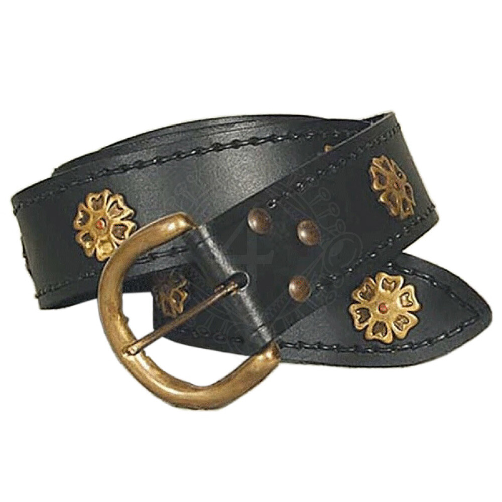 This 80-inch long belt is crafted of heavy grade leather and exhibits antiqued brass roses and a heavy-duty buckle. This belt is the perfect choice for almost any medieval knightly outfit. The extra-long heavy grade leather belt is gorgeously accented with antiqued brass roses and a heavy duty buckle. Further product information ...