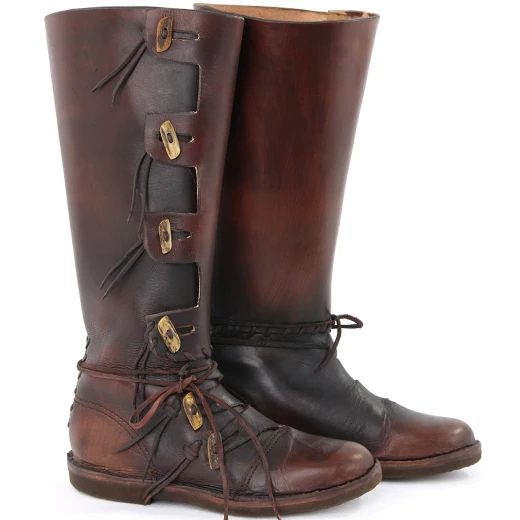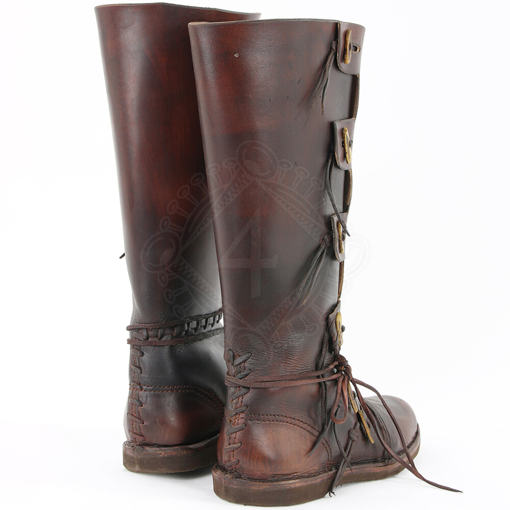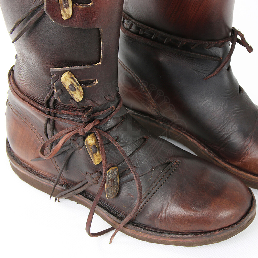 These Viking Boots are in their stadard version approx. 41cm high. Sole made of modern cobbler-rubber. The depicted boots are made of cow leather of chestnut-brown colour. Further product information ...