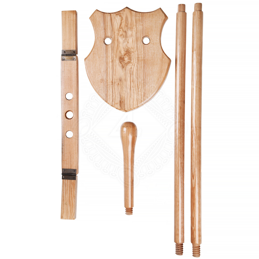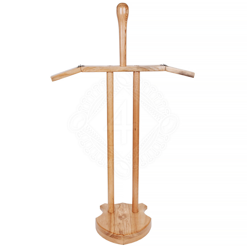 A wooden display stand for a helmet and a torso armour, for example a Roman lorica segmentata, a breastplate, a gambeson or a chainmail shirt. Further product information ...