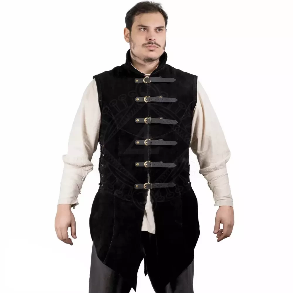 Medieval Suede Leather Jerkin 'Adrián', Black