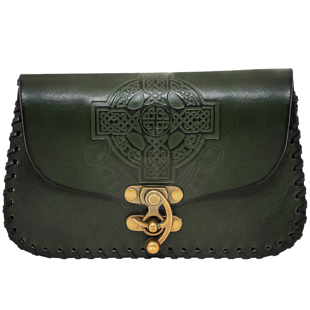 For centuries, clothing lacked built-in pockets. People of all social standings relied on belt bags, pouches, and purses to carry their daily essentials—from coins and fire strikers to personal amulets. The Celtic Cross motif on this bag draws inspiration from early medieval stone carvings found across the British Isles, blending pagan knotwork with Christian symbolism, often believed to offer protection to the bearer.
