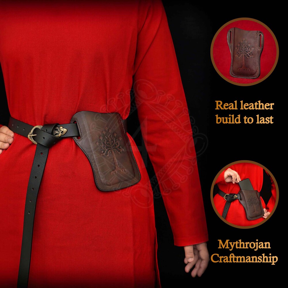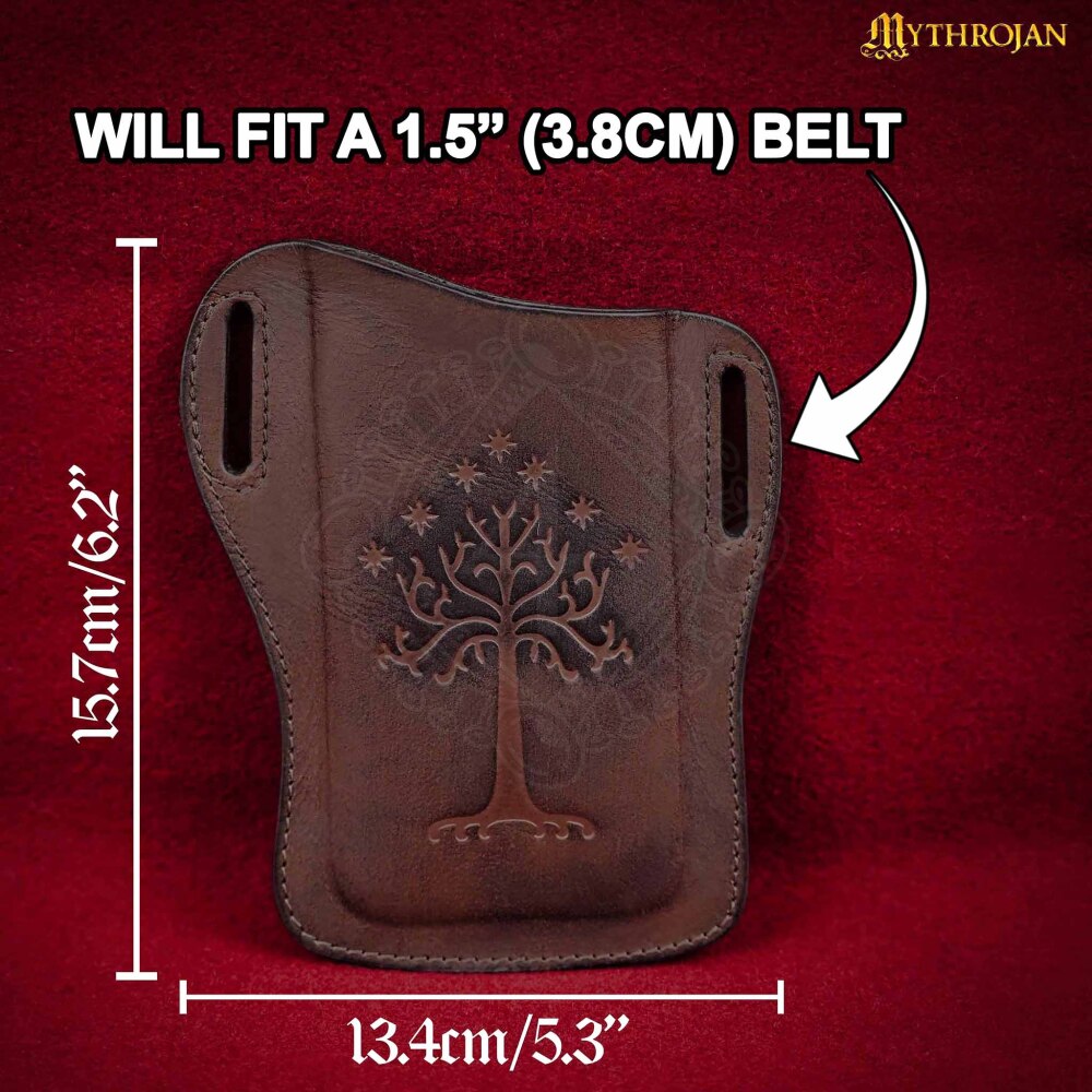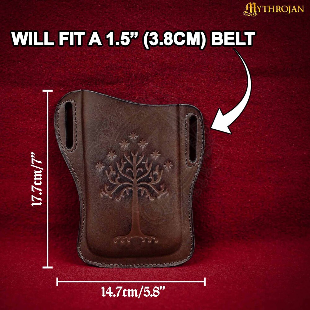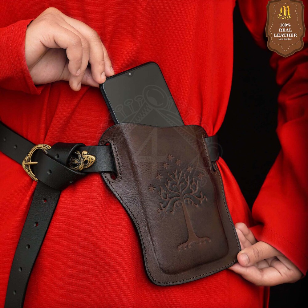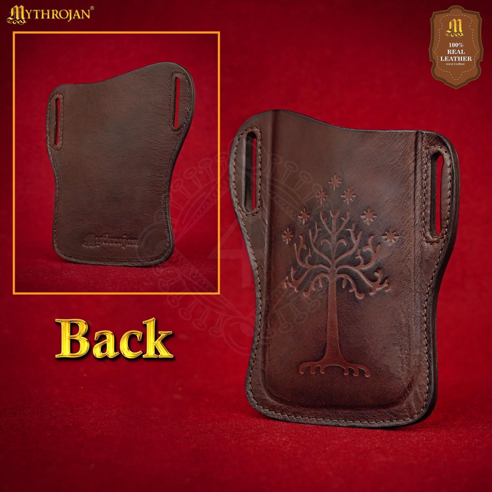 Leather Phone Holster for Belt, "Tree of Gondor" Design