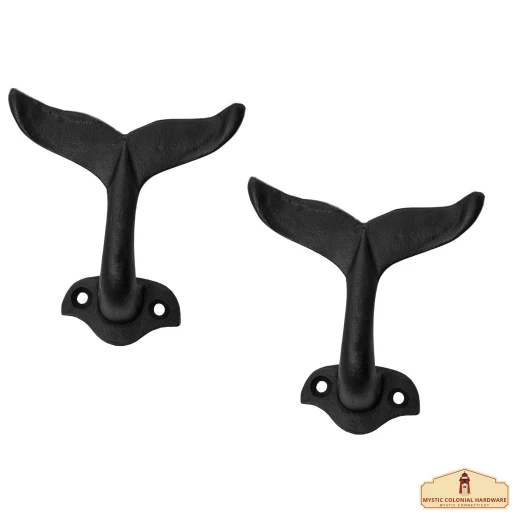 Cast Iron Whale Tail Wall Hooks, Nautical Decor - Set of 2