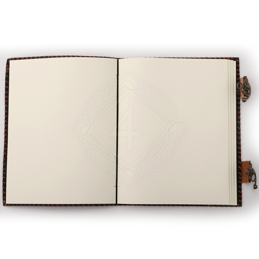 Embossed cover made of genuine cow leather. Inside 200 pages (100 sheets) of premium quality handmade white paper. The unlined paper is made of virgin cotton, completely acid-free. You can write on it with any kind of pen, acrylic colours or watercolour, i.e. is non-bleeding. The natural stones on the leather cover differ in colour, type and shape from notepad to notepad. Further product information ...