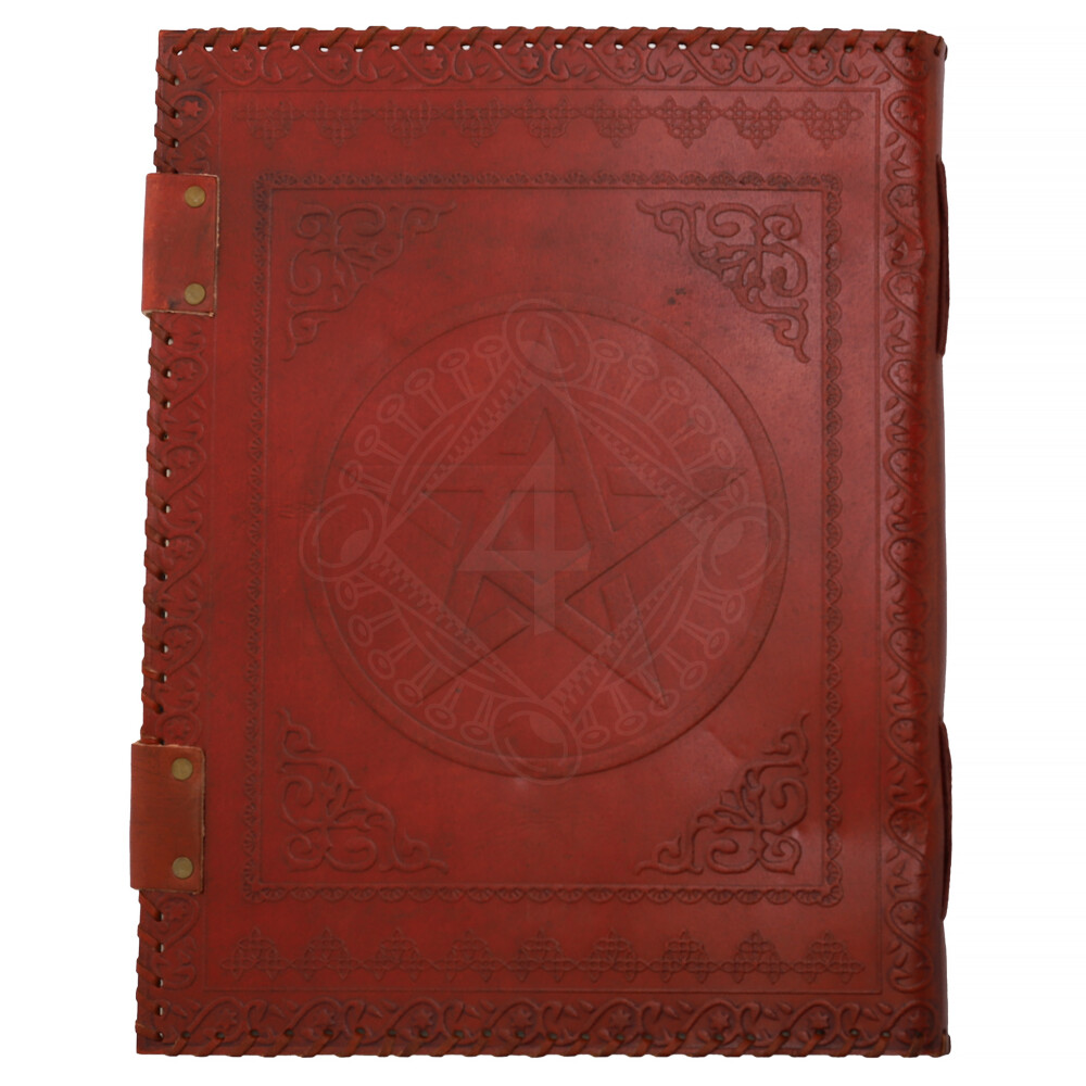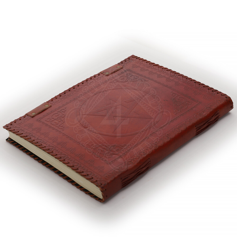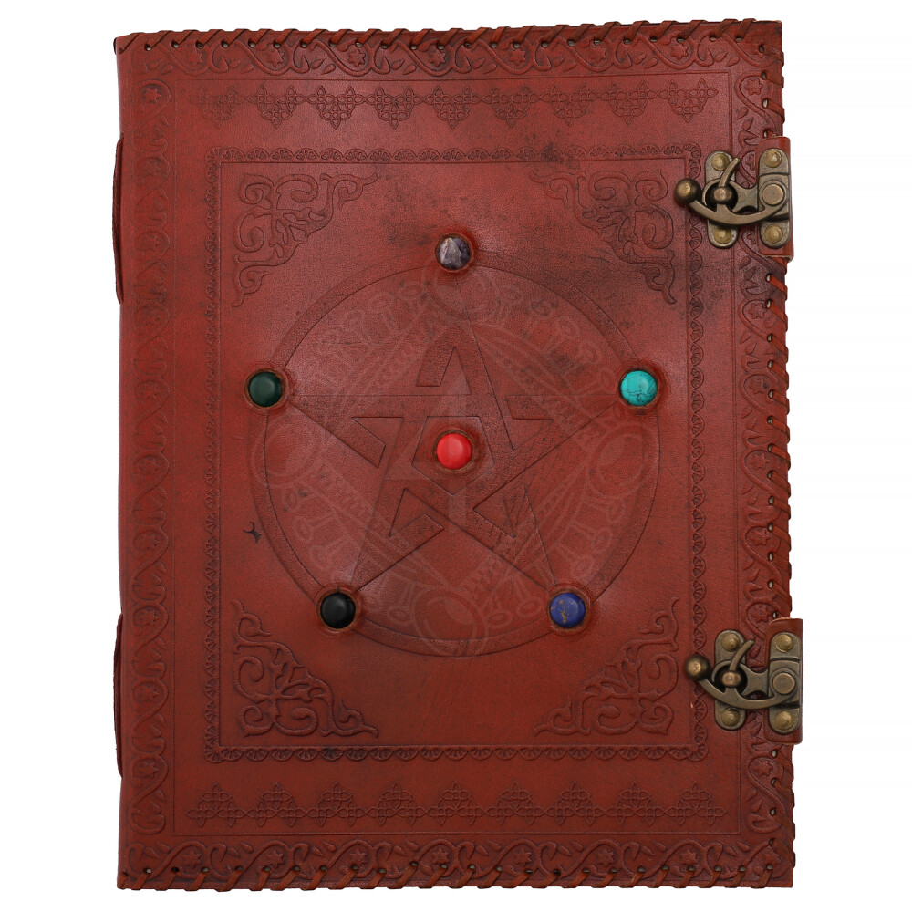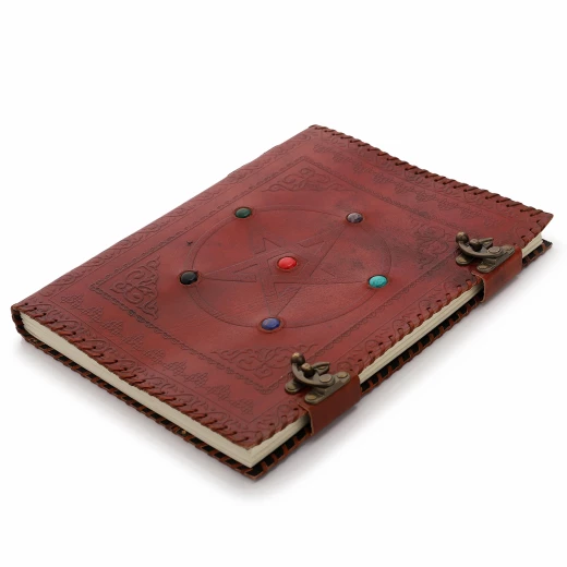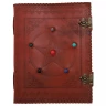 Antique Handmade Leather Bound Notepad with Embossed Pentacle and Six Chakras Stones