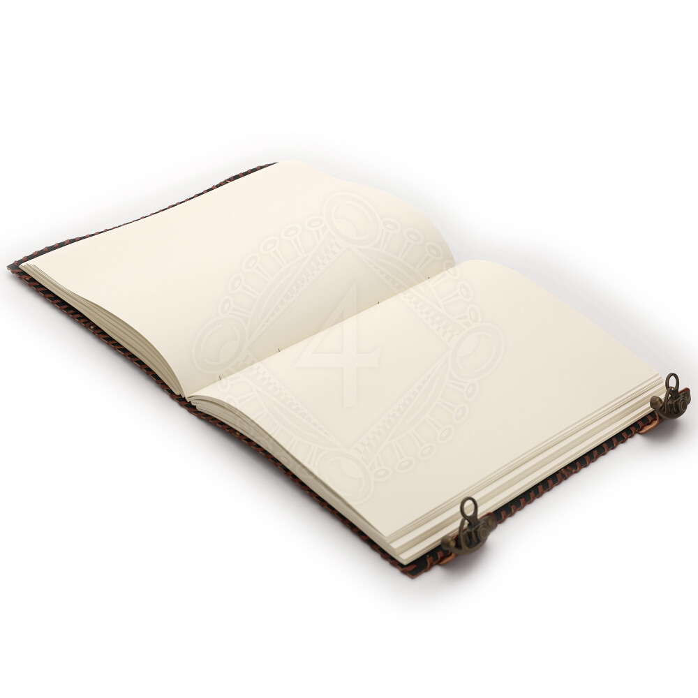 Embossed cover made of genuine cow leather. Inside 200 pages (100 sheets) of premium quality handmade white paper. The unlined paper is made of virgin cotton, completely acid-free. You can write on it with any kind of pen, acrylic colours or watercolour, i.e. is non-bleeding. The natural stones on the leather cover differ in colour, type and shape from journal to journal. Further product information ...