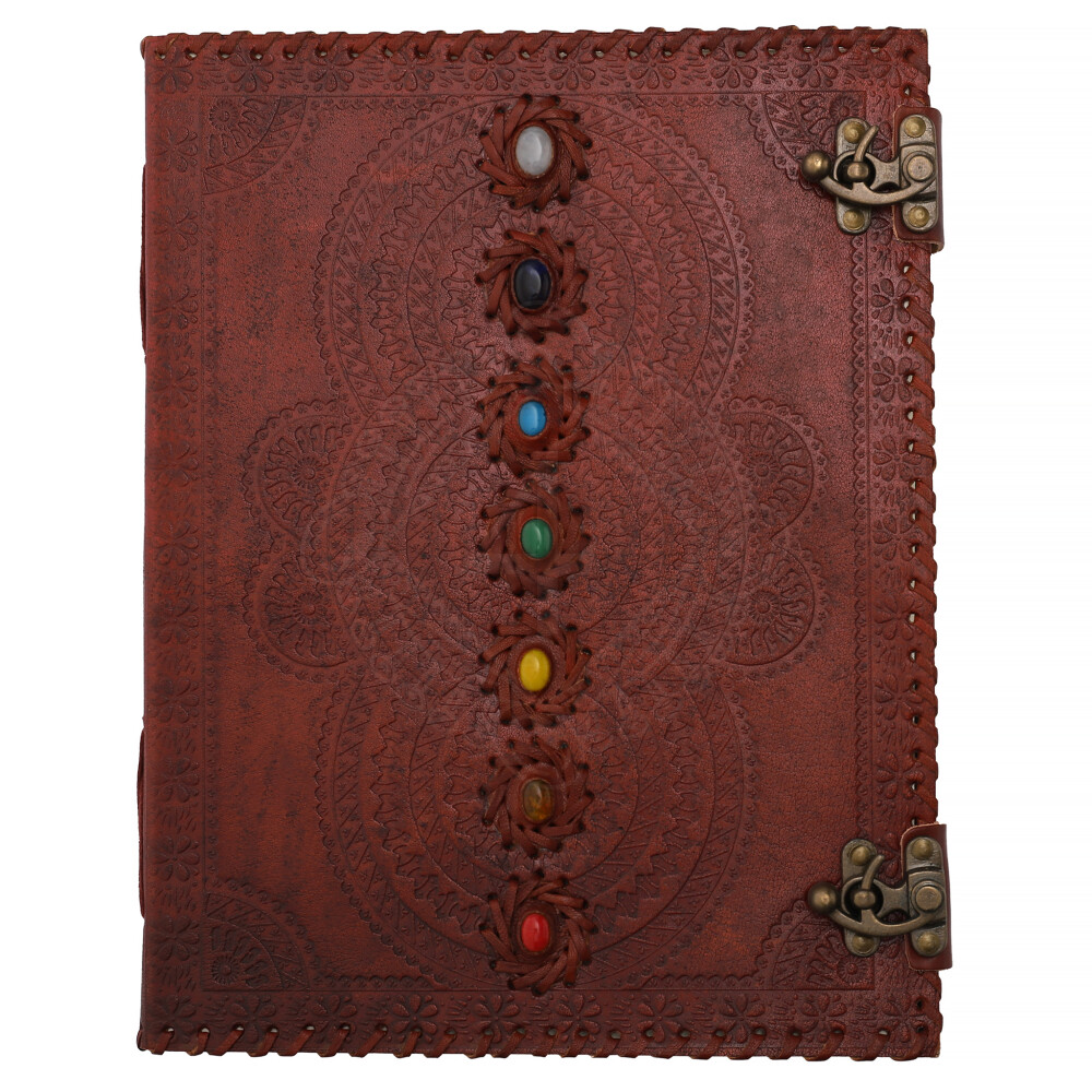 Big Leather Journal with Embossed Seven Mandalas and Seven Chakras Stones