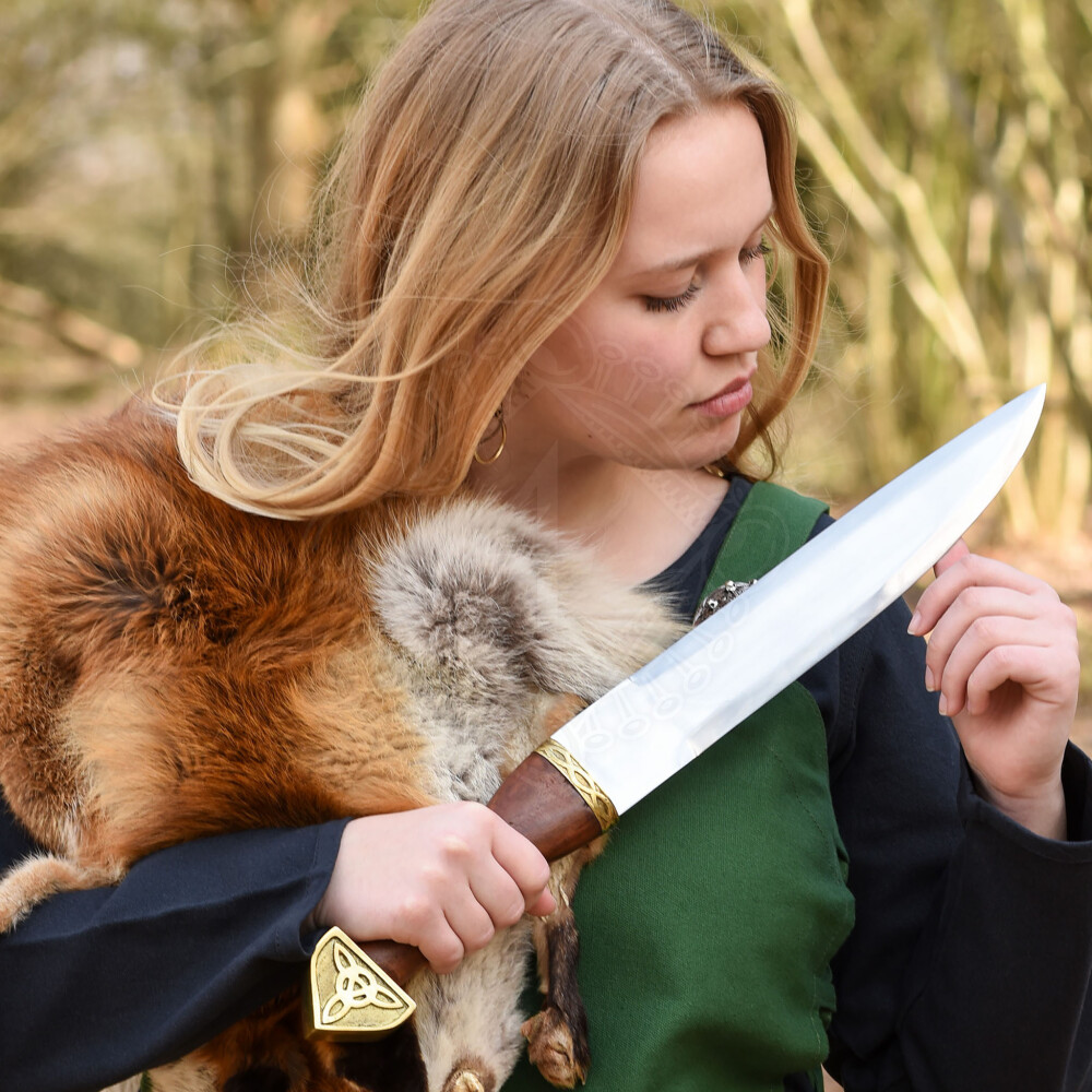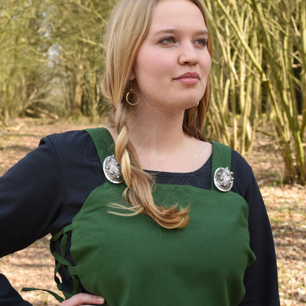 This apron dress looks best combined with a plain dress or shift and a belt. And when worn with matching accessories, it is just perfect for the portrayal of a Norse woman, maid or shield maiden.