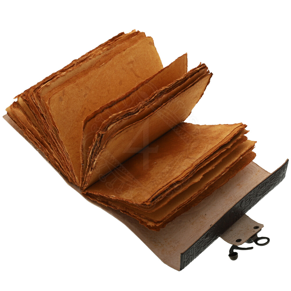 Inside the journal you will find 100 sheets (200 pages) of high-quality handmade parchment paper. This old-looking acid-free paper is made up of virgin cotton that gives a feel and texture of fine jute and canvas. You can write on this unlined paper with a biro or pencil and draw with coloured pencils and acrylic paints. Ink pens, watercolours etc. may bleed on this paper.