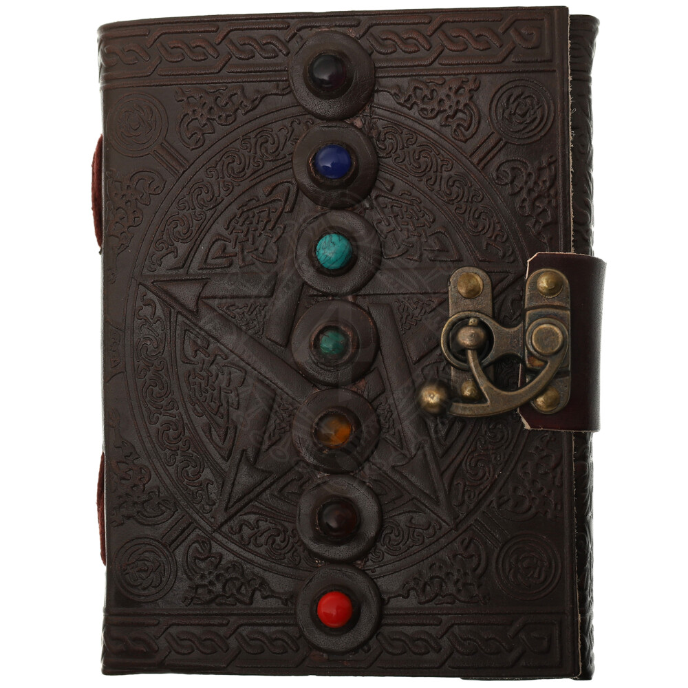 Leather Journal with Embossed Pentacle Seven Stones in a Row