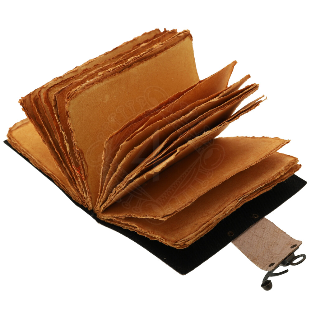 This journal is ideal as a prop for LARP (spellbook, bestiary), an accessory for a historical costume, or as a stylish personal diary. The binding features decorative cross-stitching on the spine, ensuring strength while allowing flexibility when opening.