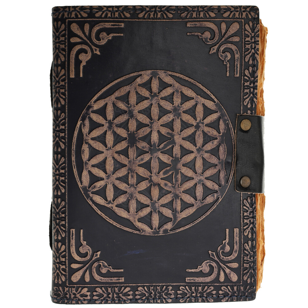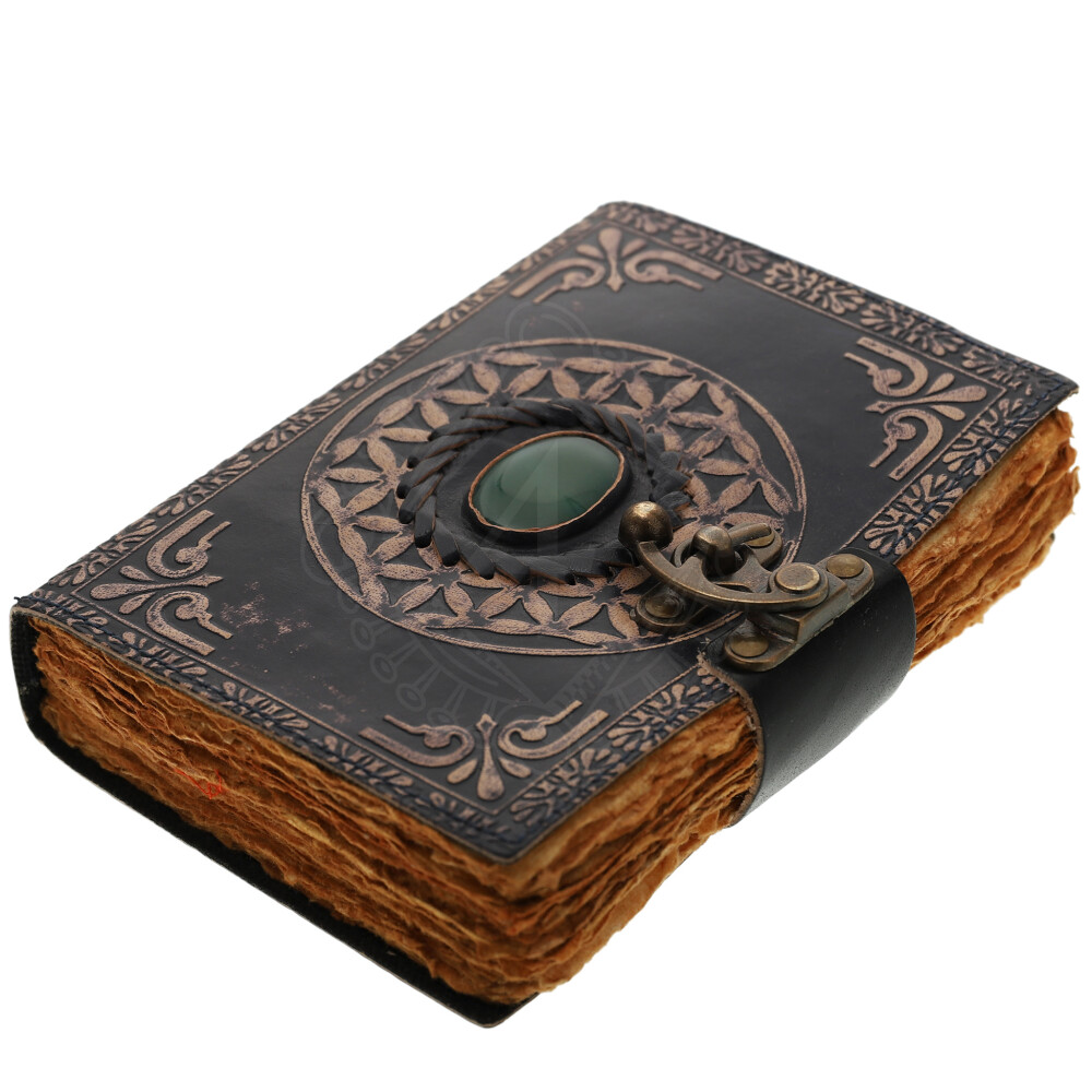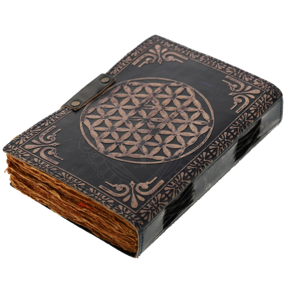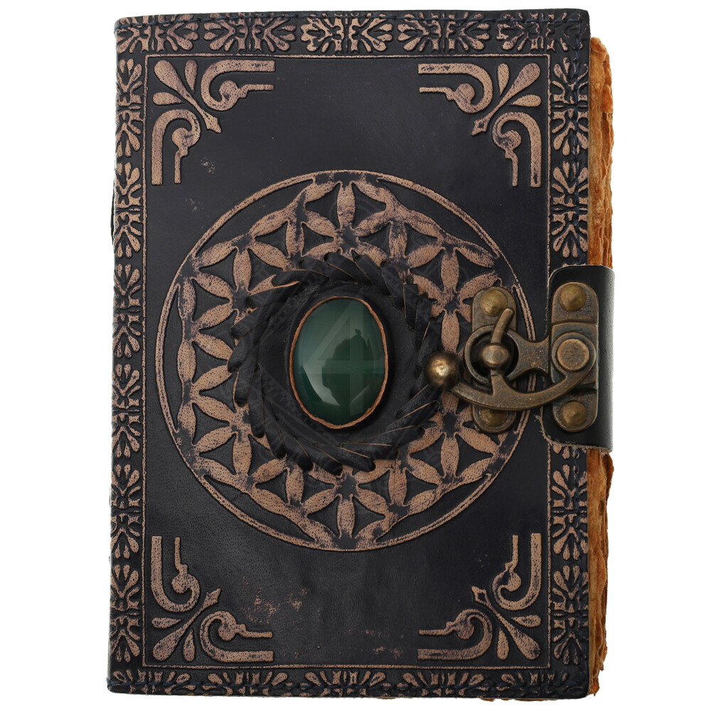Blue Leather Grimoire "Flower of Life" with Gemstone