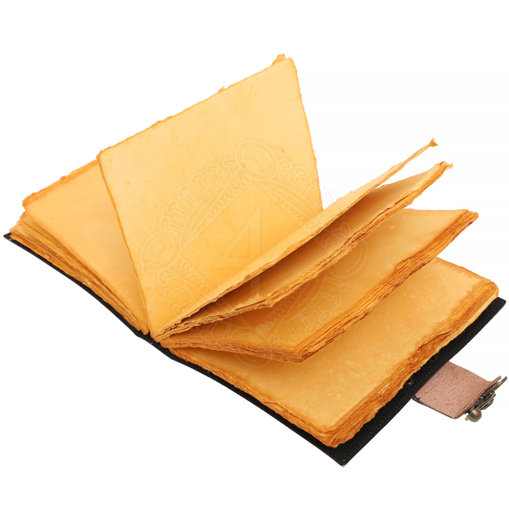 Inside, you won't find ordinary office paper. The book contains handmade parchment paper made from virgin cotton. This material is acid-free, ensuring its longevity and archival quality. With its texture and feel, it resembles a blend of jute and linen, evoking the spirit of old chronicles.