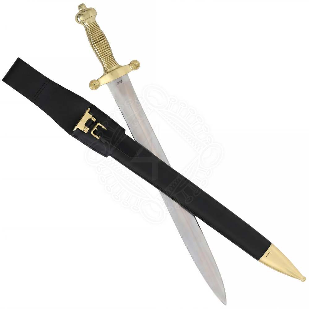 We are thrilled to present a unique and historically faithful replica of the French infantry artillery sword, a weapon that fulfilled several crucial roles on the battlefields of the 19th century. This fascinating short sword, also known as a glaive, will instantly captivate you with its massive solid brass hilt featuring a characteristic ringed grip and its broad, sharpened blade forged from premium 1075 high carbon steel. This is not merely a decorative piece, but a fully functional tool carrying the legacy of the Napoleonic and post-revolutionary French armies. Whether you are a passionate collector of military antiquities, an enthusiast of 19th-century military history, or simply looking for an exclusive example of period weaponry engineering, this sword will undoubtedly become a standout jewel in your collection. Further product information ...