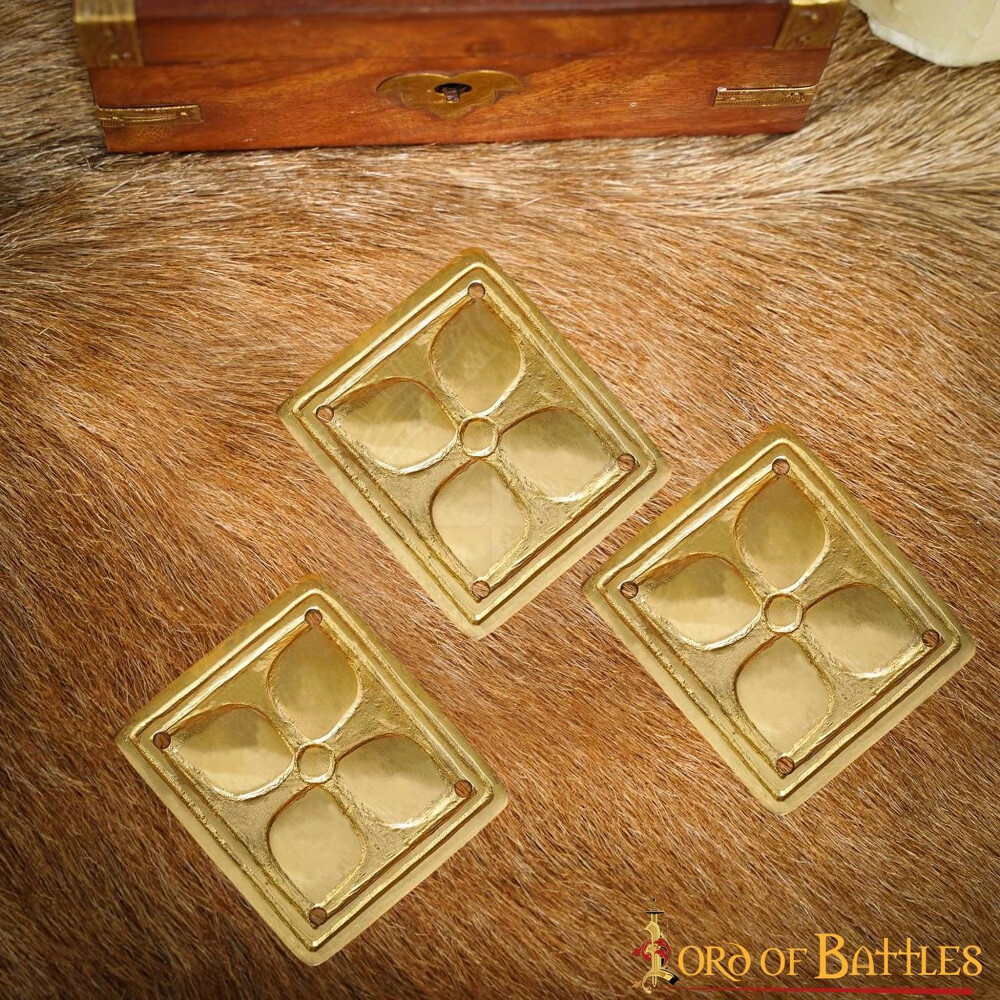 This set of roman adornments is crafted from pure brass and is approx. 5.7 cm in length and 5 cm in width. Making it easier for you to adorn your belt as an outstanding Roman accessory, we provide these decorations with a set of 10mm brass rivets.