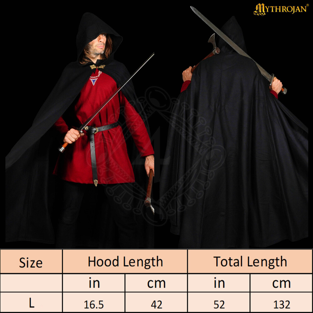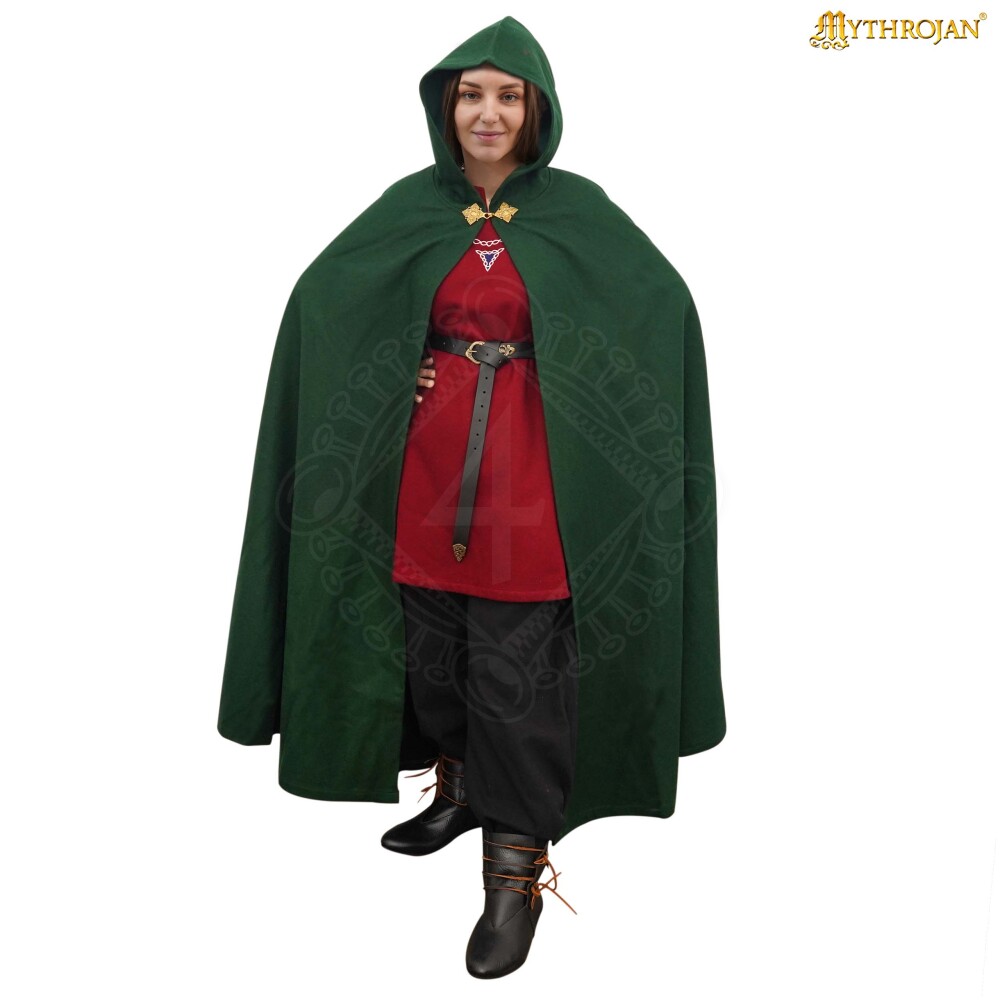 Package includes one wool cloak with a brass clasp. Other clothing and accessories shown in the photos are not included. A Mythrojan® brand product.