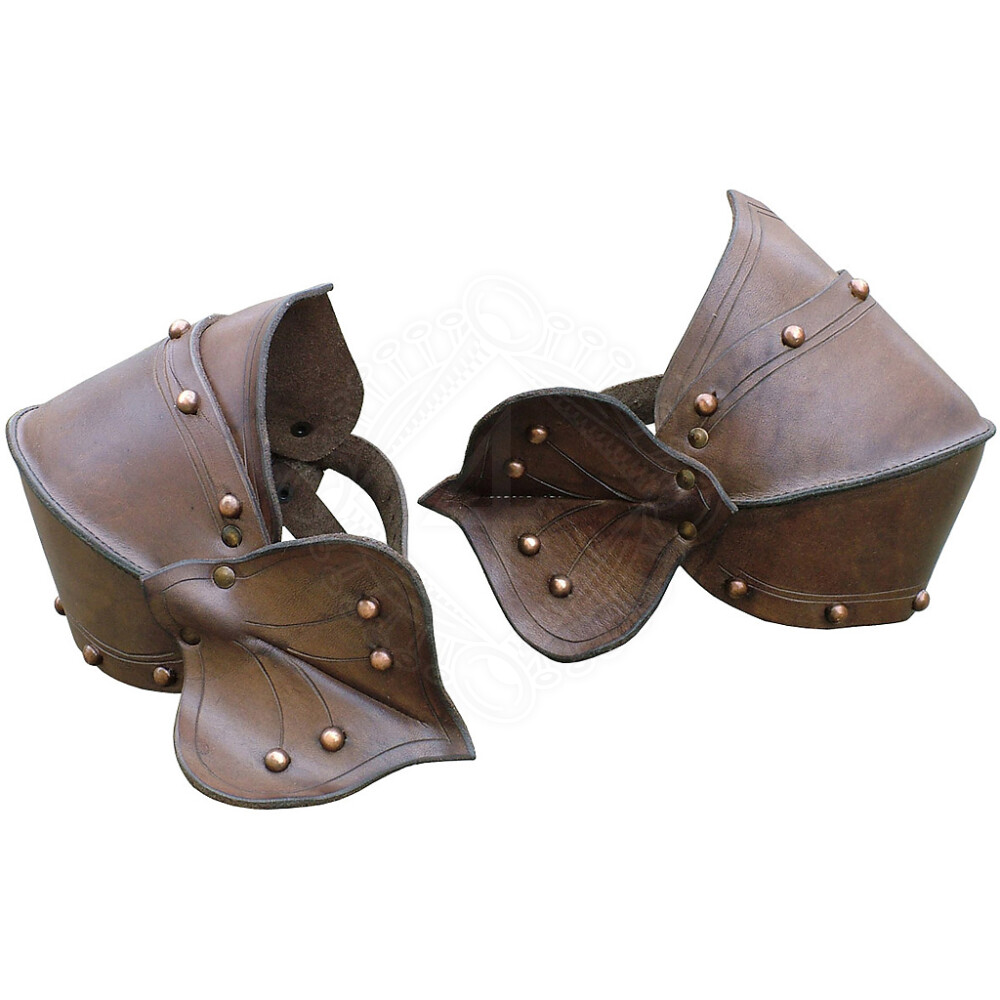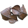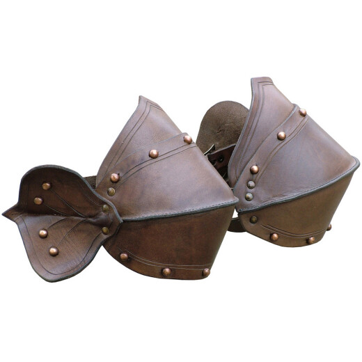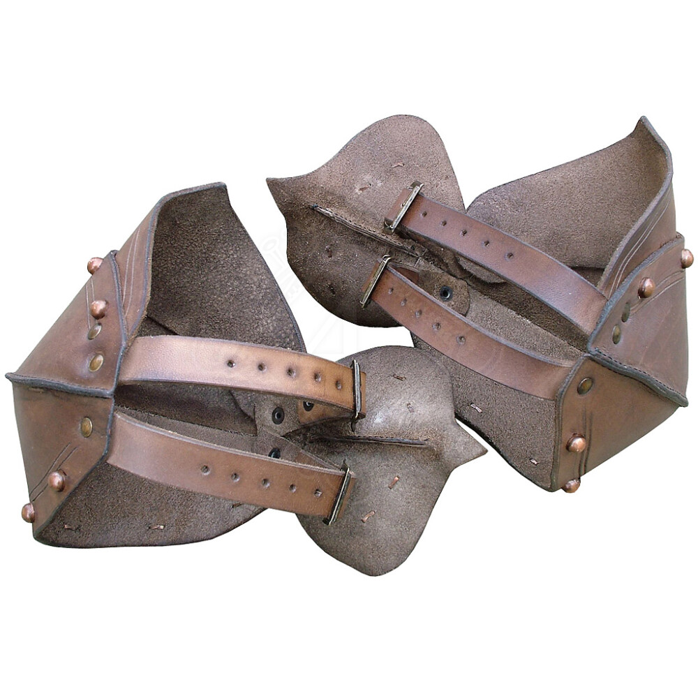 The elbow caps are meant for all active fencers who would like to protect their sensitive elbows. The pairs of elbow caps are made of up to 3.5mm thick dyed cowhide. They are composed of individual parts that are sewn together. This procedure make it possible to create three-dimensional caps. The upper extensions are attached to the main body with decorative rivets. Further product information ...