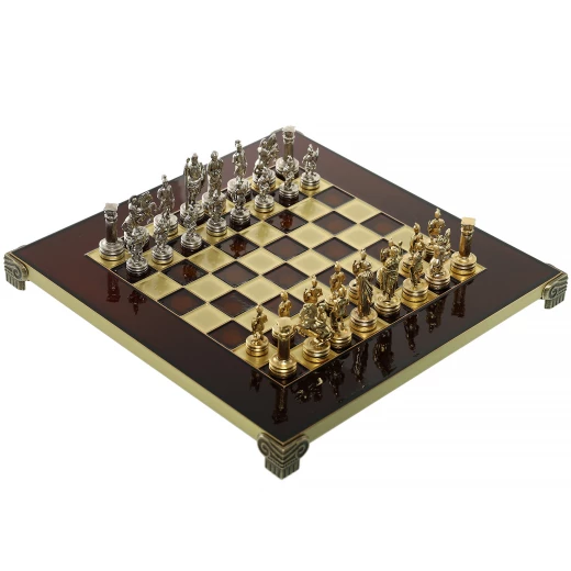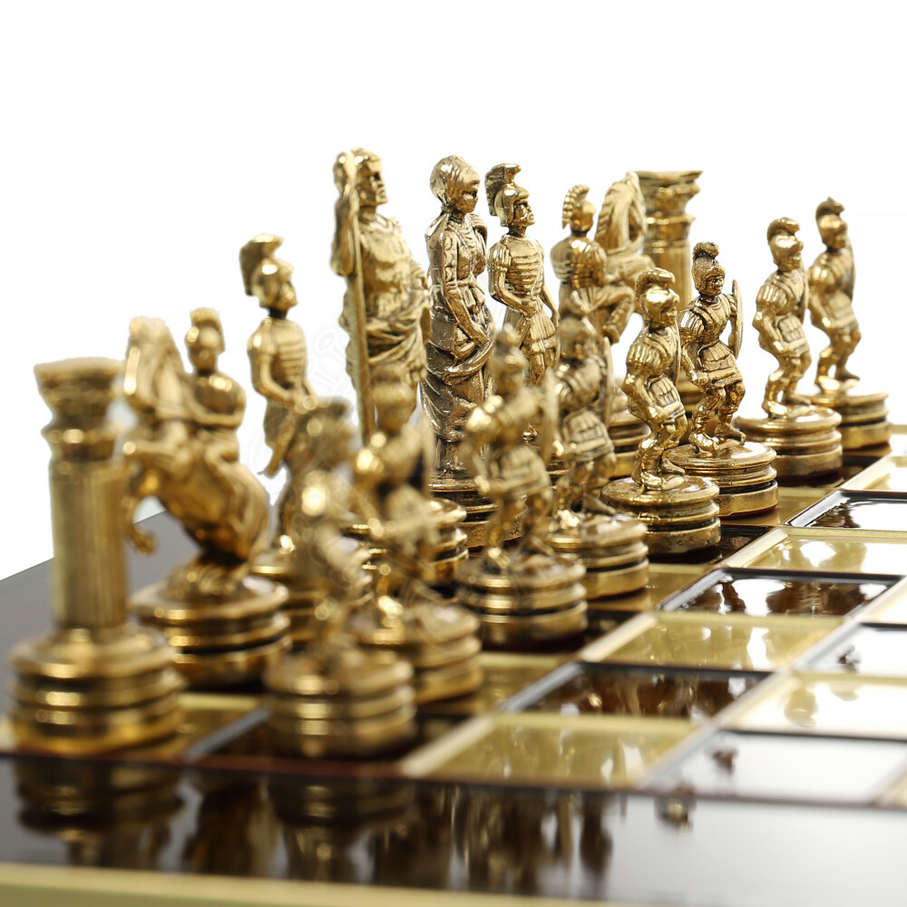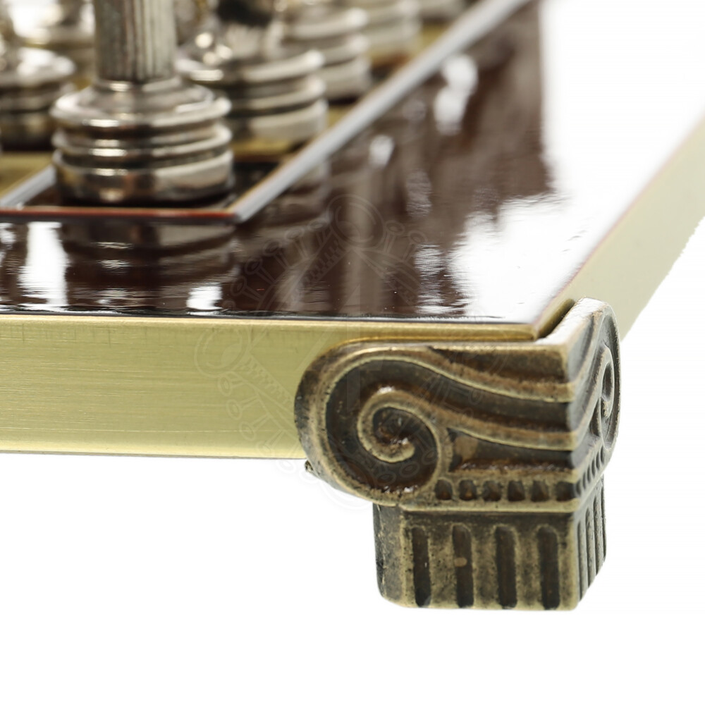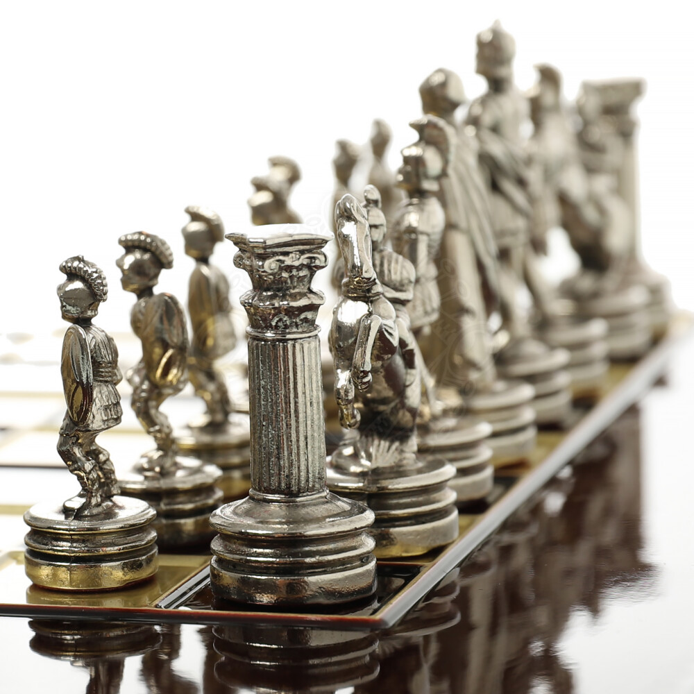 Greek Roman Period Chess Set with gold/silver chessmen and brass chessboard 28 x 28cm (Small)