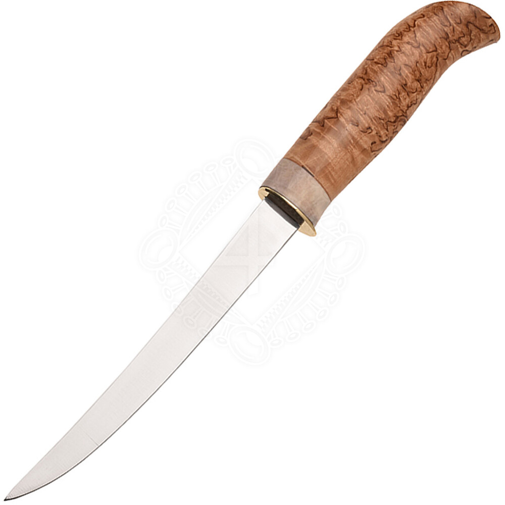 As curly birch is a natural product, variations in colour and grain are quite normal. Each knife is therefore a one of a kind piece with its own characteristics and patterns.